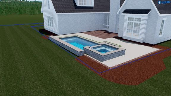 Screened porch and brick patio overlooking a level, pool-ready lot