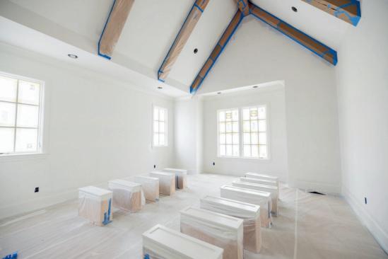 Large dining room filled with natural morning light