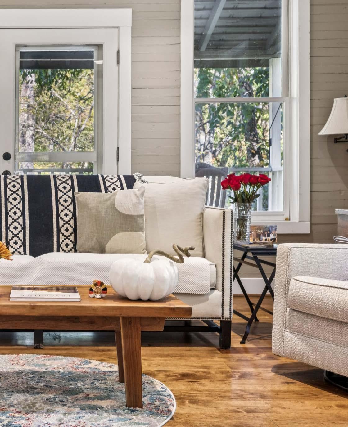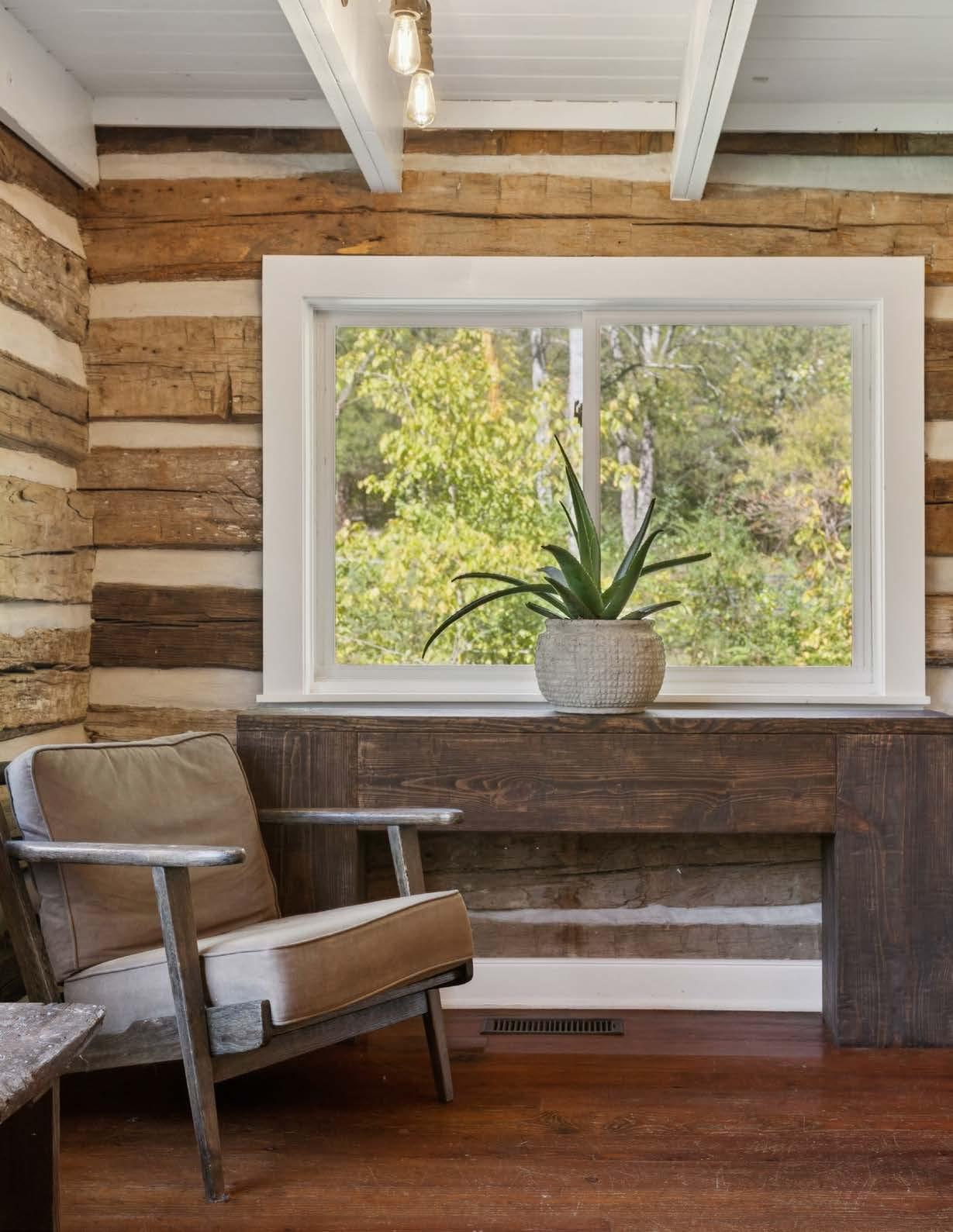 Each home showcases natural wood finishes, thoughtful craftsmanship, and abundant windows that frame serene views of the surrounding landscape. Sunlight fills the interiors, creating warm, inviting spaces that balance rustic elegance with modern comfort.