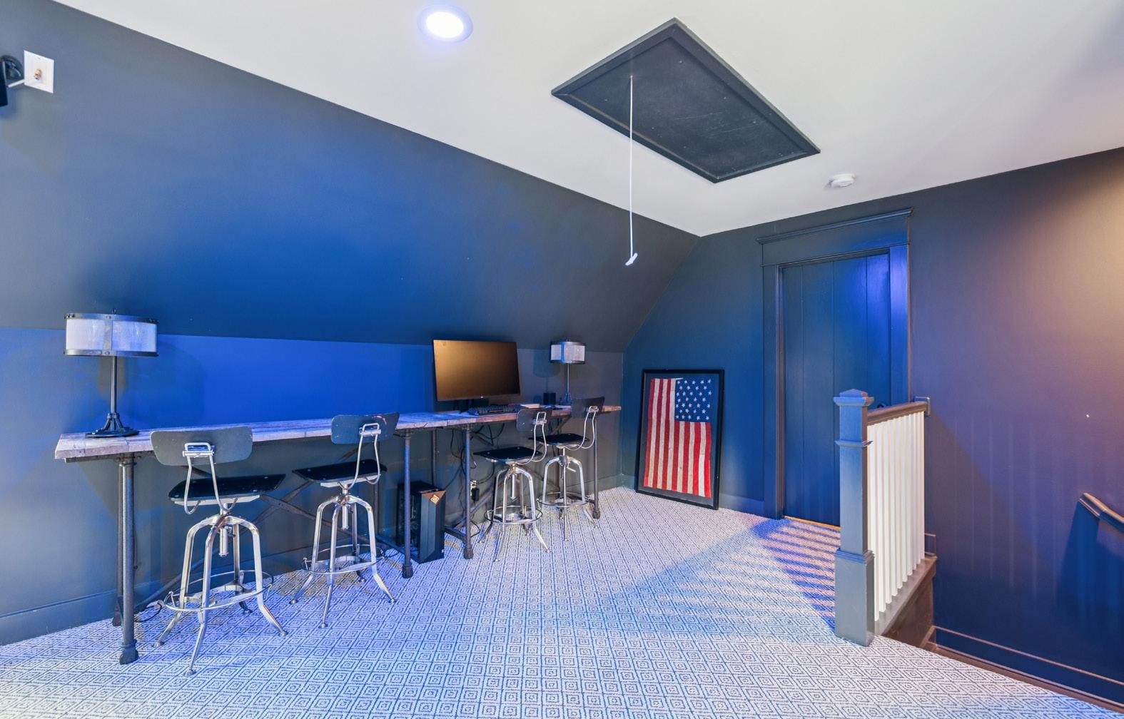 The main-level primary suite is a true retreat. It boasts dual walk-in closets, a marble shower, soaking tub, and double vanities. There is even a space to add a morning or evening bar. On one side of the upstairs, you’ll find a media room with 11.2 surround sound with a flexible storage space. On the other upstairs side there are three additional bedrooms, two baths, and flexible bonus space.
