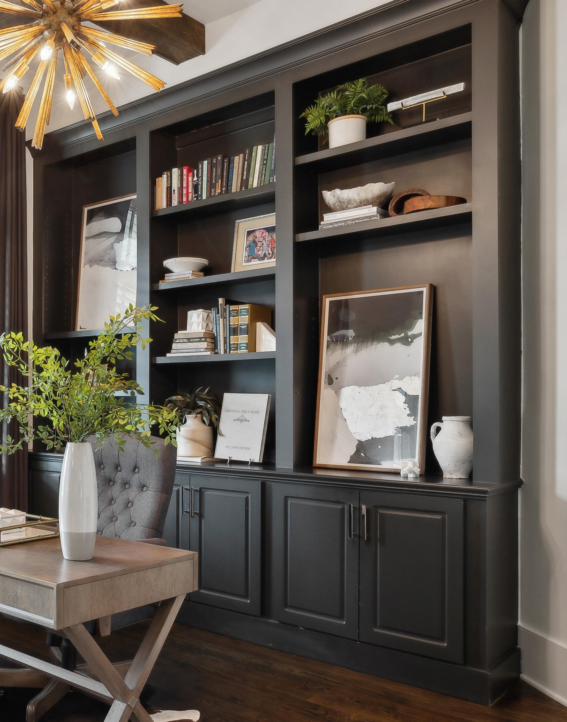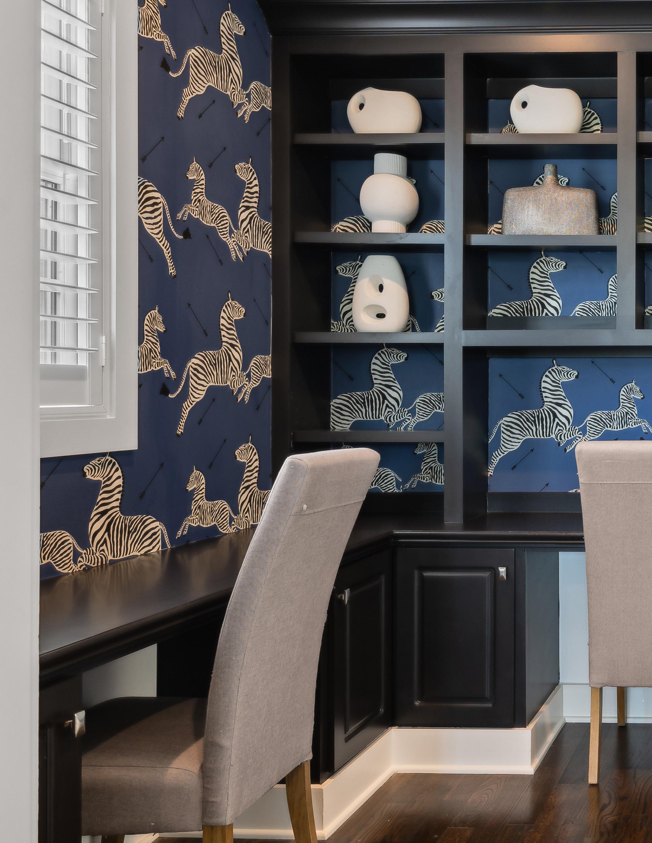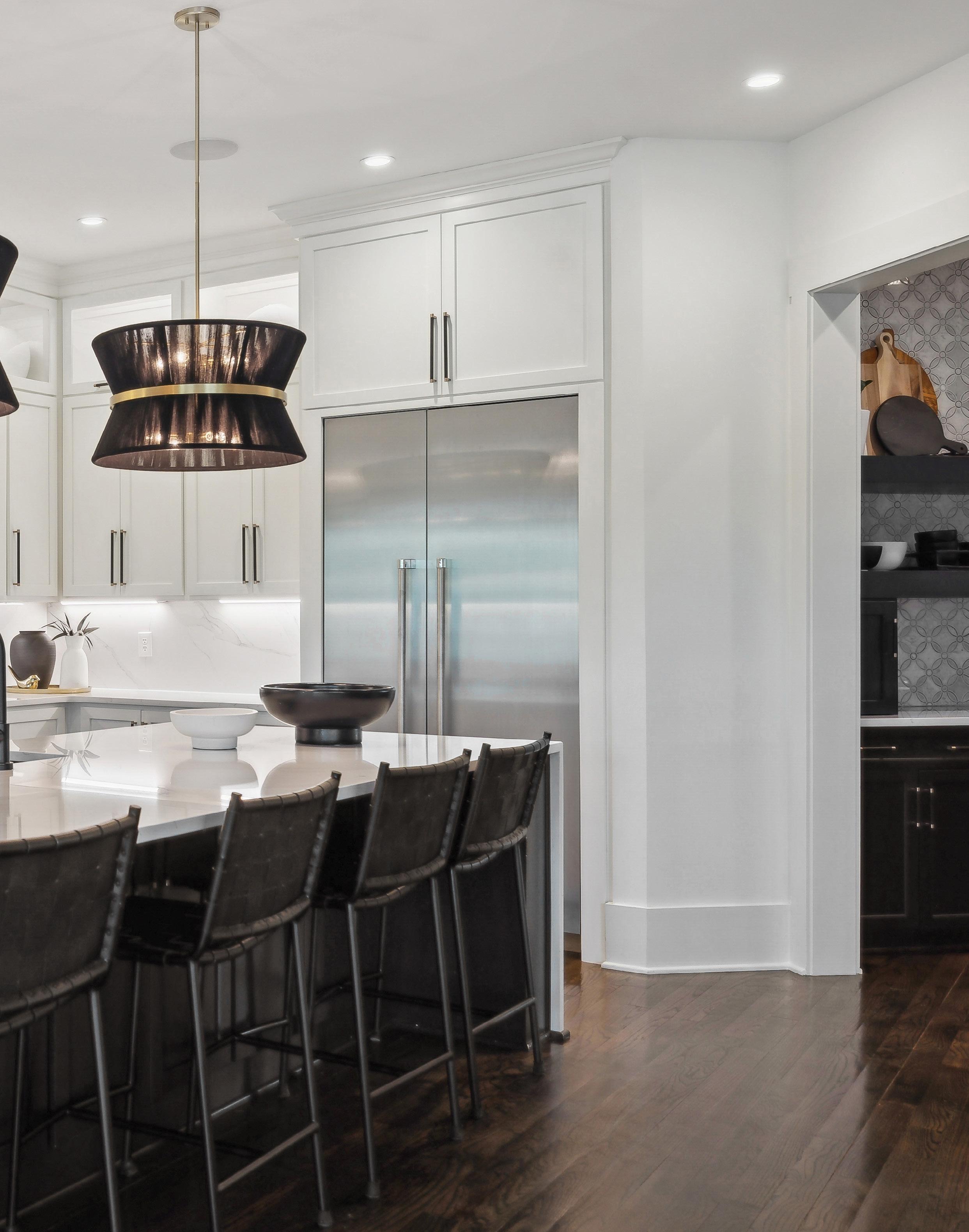 Upstairs offers a fourth bedroom with a bath, a bonus office, and a large rec room with a wet bar that opens to a private balcony with a hanging daybed overlooking the backyard and golf course.
