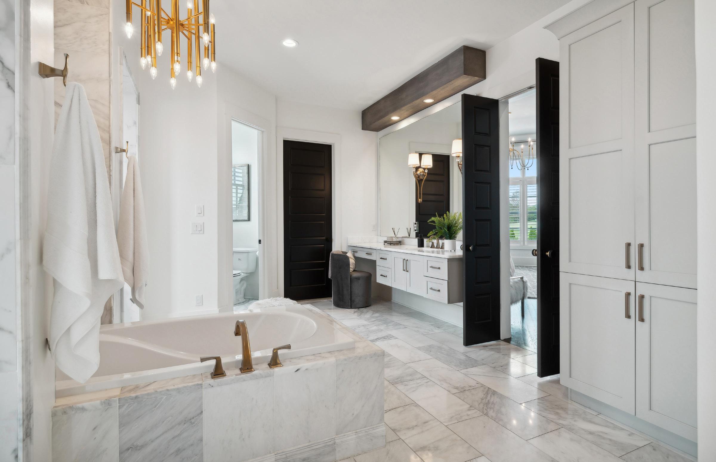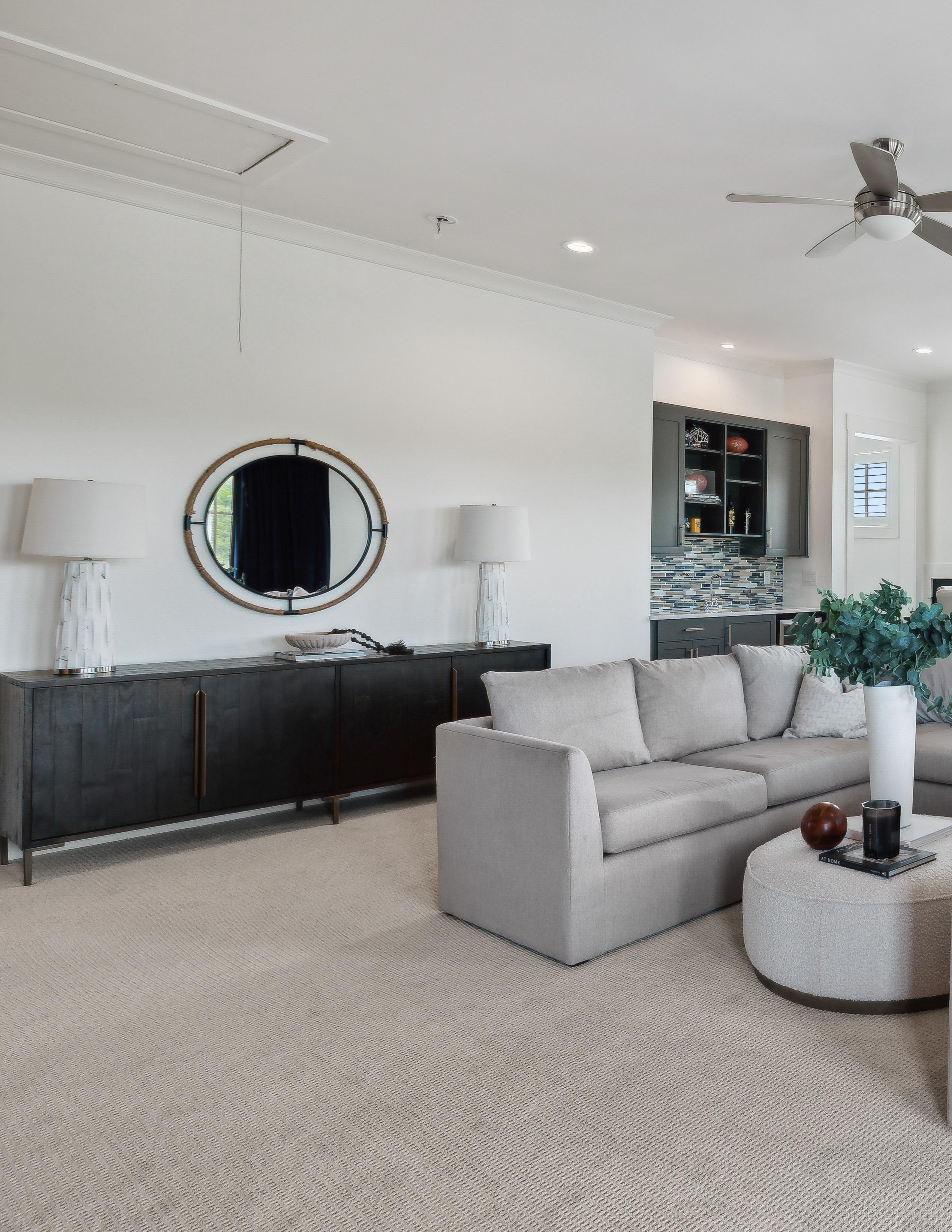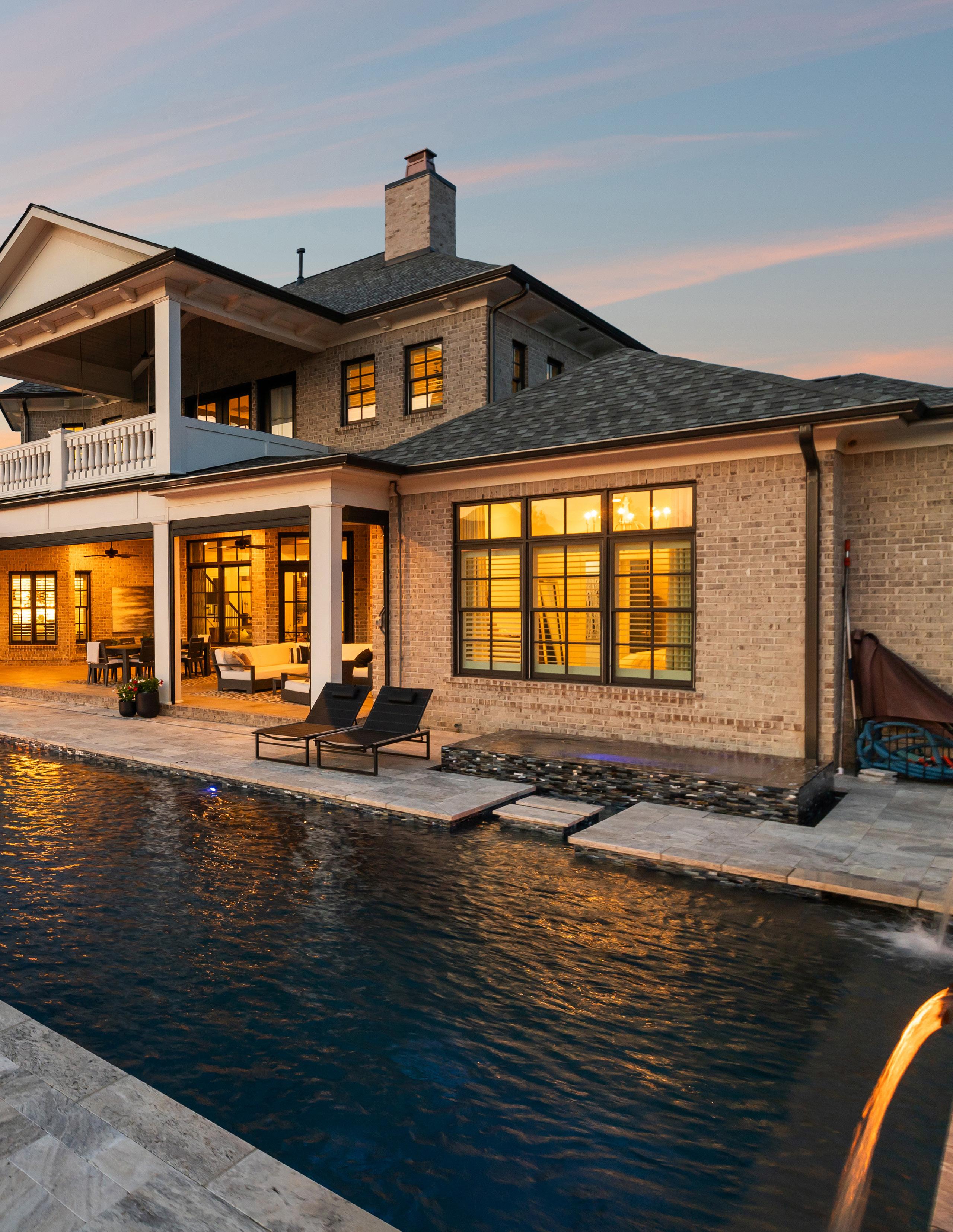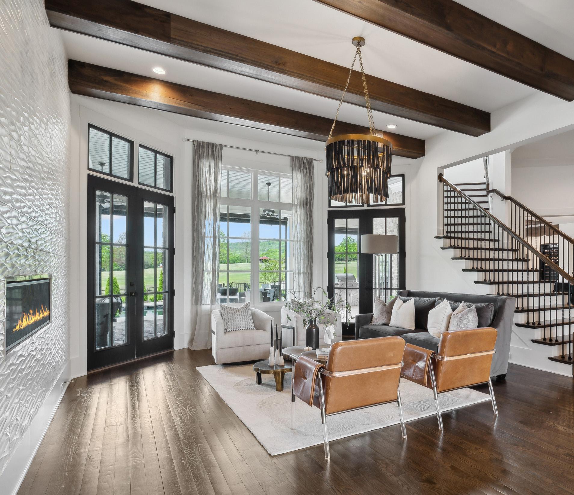 This exceptional all-brick home in the gated Grove community boasts golf course views and resort-style amenities. Inside, high-end finishes define the elegant yet functional design. The main level features an office with built-ins, a formal dining room, and a living room with a fireplace and golf course vistas. The chef’s kitchen flows into a second living area with a wet bar, while a luxurious primary suite and two additional en-suite bedrooms complete this level.