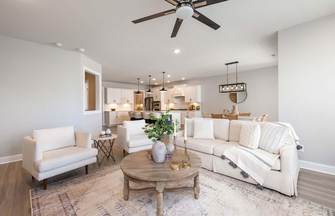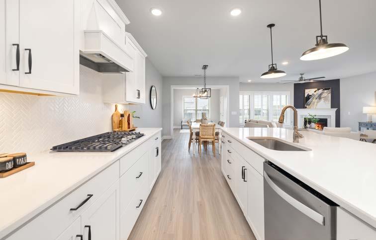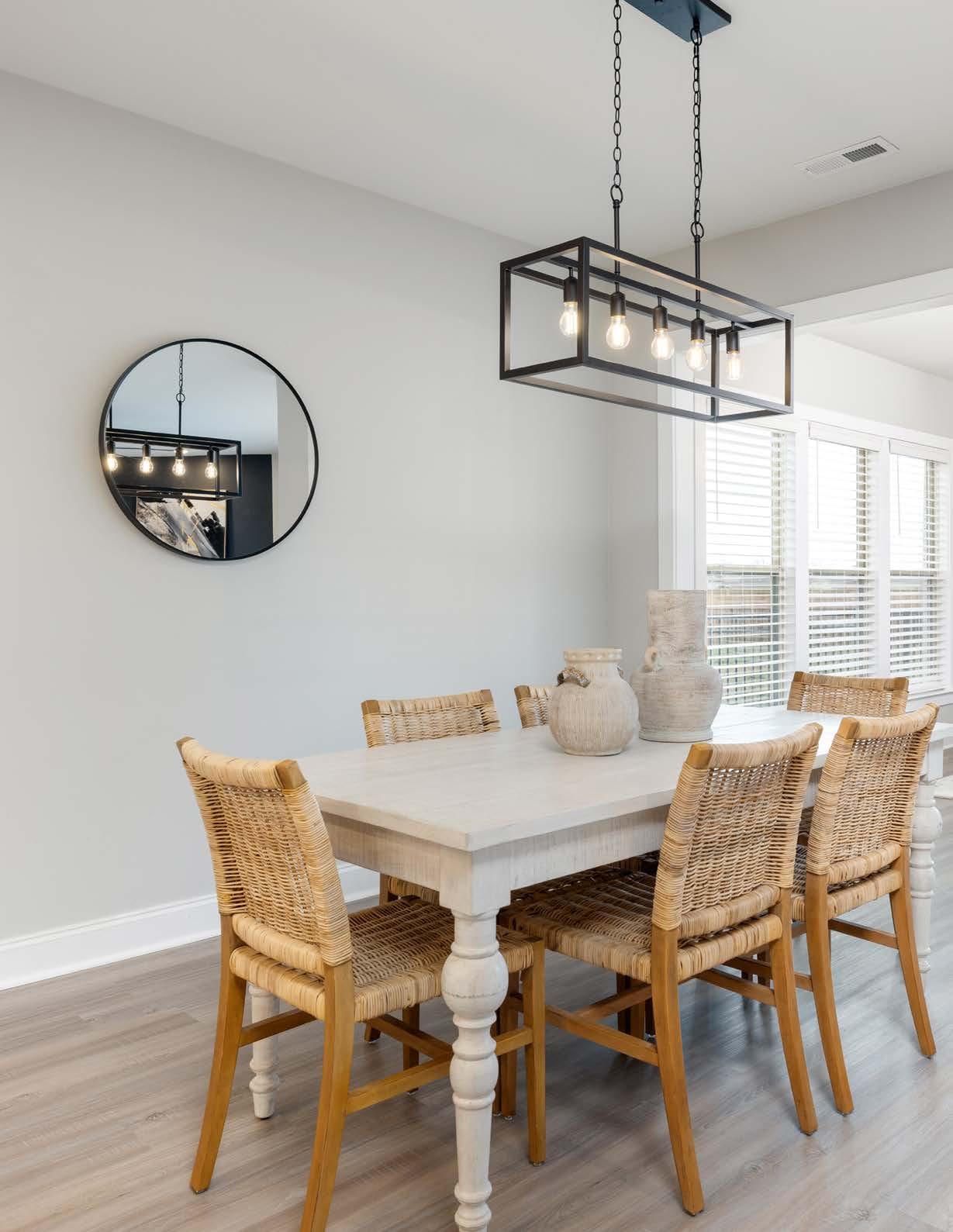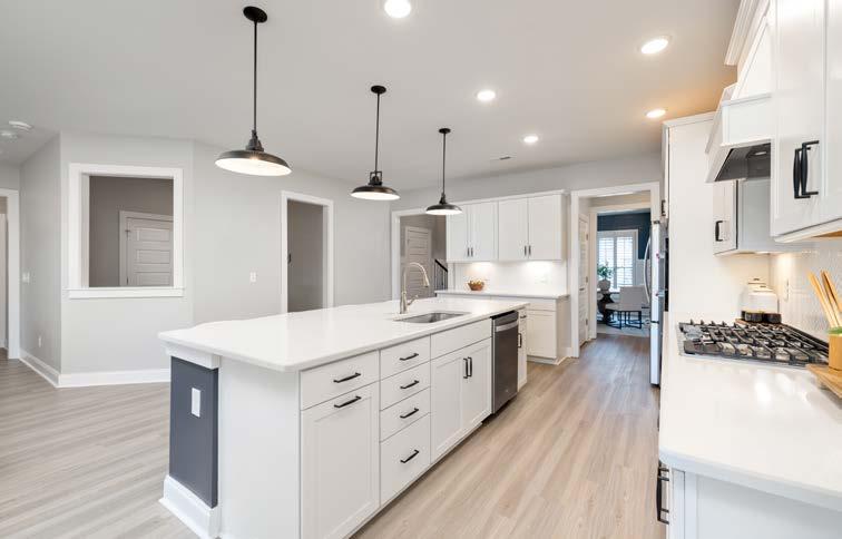 A charming covered front porch welcomes you into a light-filled entry foyer, flanked by a formal dining room with a stylish dry bar perfectly positioned between the dining area and kitchen—ideal for entertaining. The gourmet kitchen is a true centerpiece, featuring a large island, walk-in pantry, stainless steel appliances, a built-in oven and microwave, and a gas cooktop. Adjacent breakfast and additional seating areas provide flexible spaces for casual dining or gathering with guests.