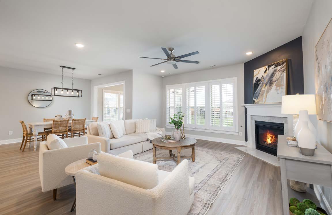 The open-concept living area is anchored by a cozy gas fireplace and enhanced by abundant windows that flood the space with natural light. The main level is thoughtfully designed with a powder bath, mudroom, a private guest suite with a full bath—perfect for visitors or multigenerational living—and a dedicated home office.