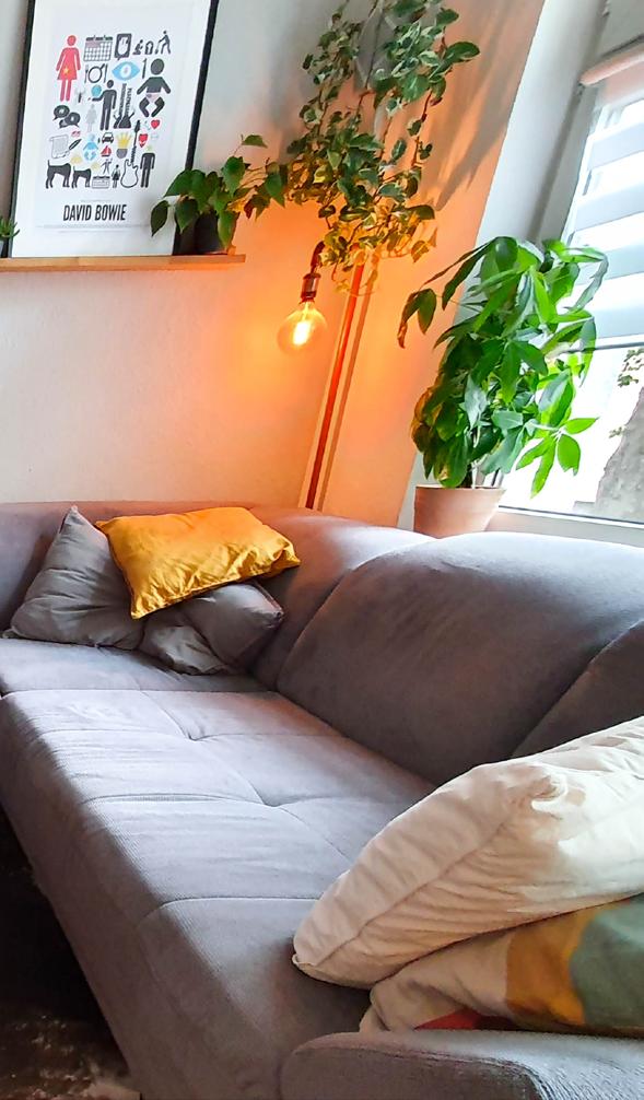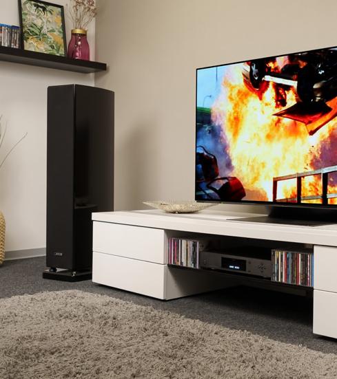 Ein wichtiger Faktor dafür ist das integrative Audio-Möbel, das der 36-jährige selbst gebaut hat. Dieses ist so gestaltet, dass es das Wiedergabe-System und einen Teil der Vinyl-Sammlung auf nimmt, zugleich aber nicht wie ein klassisches HiFi-Rack daher kommt. Besonders beeindruckend ist dabei der Ausschnitt der Deckelplatte, in dem die aktuellen Vinyl-Favoriten so platziert werden, dass sie aufrecht stehen und schnell durchgeblättert werden können. Eben so, wie man es aus Plattenläden kennt. In der Musikwiedergabe mag es der Düsseldorfer dann ebenso kombiniert und integrativ: Während die meisten eingefleisch ten Musikfans sich entweder fürs Online-Streamen oder das Sammeln von Schallplatten entscheiden, pickt sich Stephan quasi die Rosinen aus beiden Welten. Zunächst wird die Musik über den Online-Dienst seiner Wahl gestreamt. So ist die Mu sikvielfalt gewahrt. Gezielt finden Stephan und seine Frau Lisa so auch jederzeit schnell die passende Playlist zur aktuellen Stimmung. Das kann heute übrigens Rock, morgen Klassik und übermorgen Jazz sein. Auch hier ist der Musikfan offen. Ganz nebenbei entdeckt der zweifache Familienvater auf diese Weise aber auch immer wieder neue Songs, Alben und Künst ler. Haben sich die Neuentdeckungen schließlich bewährt, wird die entsprechende Schallplatte bestellt und wandert in die in zwischen knapp 300 Alben umfassende Sammlung. Diese ist im Übrigen ganz bewusst „klein“ gehalten - nur die absoluten