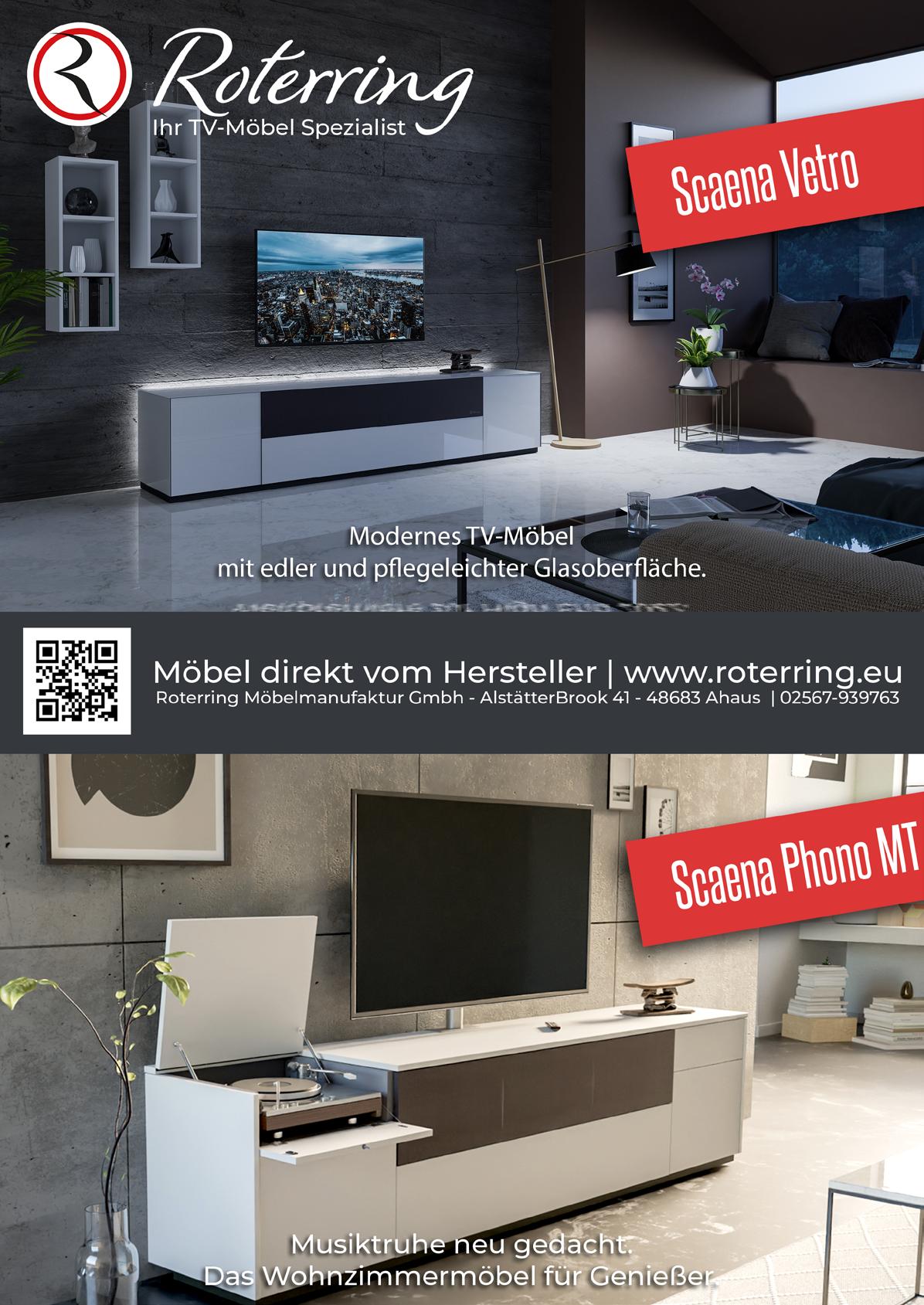ROTERRING SCAENA PROTEKT SOUND PM3.0 Modern gestylt, penibel verarbeitet und optisch wandelbar: Das Roterring Scaena Protekt SoundPM3.0 schaut man gern an – und man hört ihm gern zu. Dieses individuell gestaltbare Audio-Möbel beherbergt nämlich ein kaum sichtbares Lautsprecher-Setup aus dem Hause Nubert. So bleibt der Wohnraum optisch frei von Technik und wird bei Bedarf zum klangstarken Heimkino.