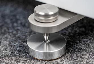 BFLY TALIS UND B.DISC bFly-audio ist bekannt für sinnvolle und wirksame Zubehörpro dukte für hochwertige HiFi-Anlagen. Die TALIS Lautsprecherfüße und die b.DISC machen da keine Ausnahme. Beide Dämpfungselemente sollen mit ihrem vielschichten Aufbau im Multi Layer Ad justment Schallwandler vom Boden entkoppeln. Dadurch soll verhindert werden, dass sich Schwin gungen unkontrolliert ausbreiten und der Klang so nicht an Präzision einbüßt. Dafür gibt es beide Produkte, die für unterschiedliche Voraussetzungen entwickelt sind, in verschiedenen Größen, ange passt an das Gewicht der vorhandenen Geräte. In unserem Praxistest zeigten sich TALIS und b.DISC durchaus wirkungsvoll und halfen dabei die ganze Präzision der hochwertigen Lautsprecher zu erhal ten und nichts davon im mitschwingenden Unter grund zu verlieren. Ein Ausprobieren an der eigenen Anlage lohnt sich also.