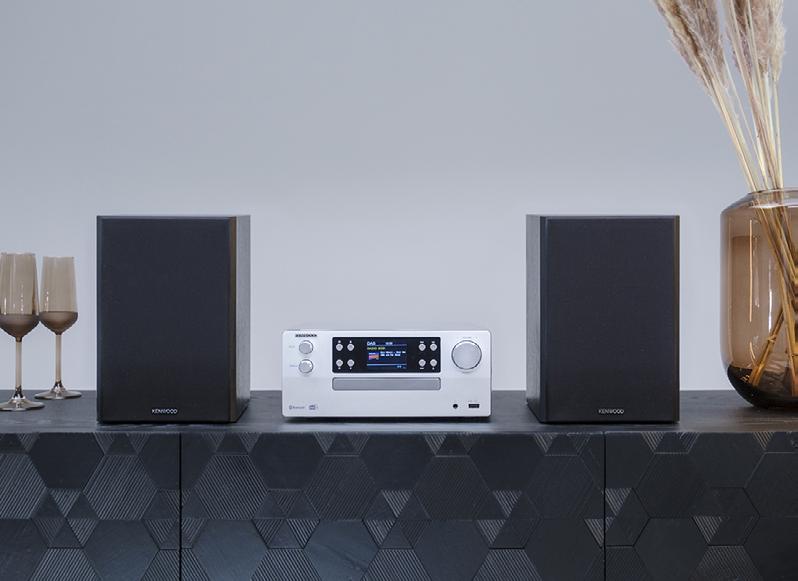 1 | KENWOOD CR-M30DAB Bis zu 7 Stunden Akkubetrieb, DAB+, UKW und Bluetooth: Das in den Gehäuseausführungen Roségold-Weiß, Weiß und Schwarz erhältliche Kenwood CR-M30DAB ist vollgepackt mit modernster Digitaltechnologie. Dabei sorgen ein DAB+ und ein UKW-Tuner für kristallklaren Empfang aller am Aufenthaltsort bereitstehenden Analog- und Digitalradio-Sender. Welche Musik gerade spielt, ist am hochauflösenden 6,1 Zentimeter großen TFT-Farbdisplay abzu lesen. Doch auch für die Wiedergabe von auf Smartphones, Tablets oder Notebooks gespeicherten Audiodaten ist das Radio gewappnet. Diese lassen sich kabellos per Bluetooth streamen. Darüber hinaus ermöglicht es die integrierte Uhr, sich vom Kenwood Radio wecken oder in den Schlaf singen zu lassen. Und selbst an ein ungestörtes Radiohören haben die Kenwood Entwickler gedacht: Über den 3,5 mm- Klinkenanschluss des CR-M30DAB lässt sich jeder handelsübliche Kopfhörer anstöpseln. Diese Vielfalt macht das CR-M30DAB zur musikalischen Vollversorgung beim Camping, im Garten oder am Badesee. Preis: 69 Euro 2 | KENWOOD M-725DAB Das Kenwood M-725DAB glänzt mit einem klassisch-eleganten Design, edlen Aluminium-Oberflächen und einer umfangreichen Ausstattung. So haben Radiohörer mit dem Digitalradio DAB+ und dem traditionellen UKW gleich zwei Möglichkeiten, ihre Lieblingssender aus dem Äther zu fischen. Die Wiedergabe der CD-Sammlung erledigt das integrierte Laufwerk, Computer, Festplatten und Sticks finden über den frontseitigen USB-Port Anschluss und die auf Smartphones oder Tablets gespeicherten Musikdaten nimmt das Microsystem drahtlos per Bluetooth in Empfang. Aufschluss zum gerade laufenden Audioprogramm sowie den aktuellen Einstellungen und Funktionen gibt das 6,1 Zentimeter große TFT-Farbdisplay. Die Steuerung erfolgt wahlweise über die mitgelieferte Infrarot-Fernbedienung oder die aus Aluminium bestehen- den Bedientasten an der Front. Preis: 199 Euro
