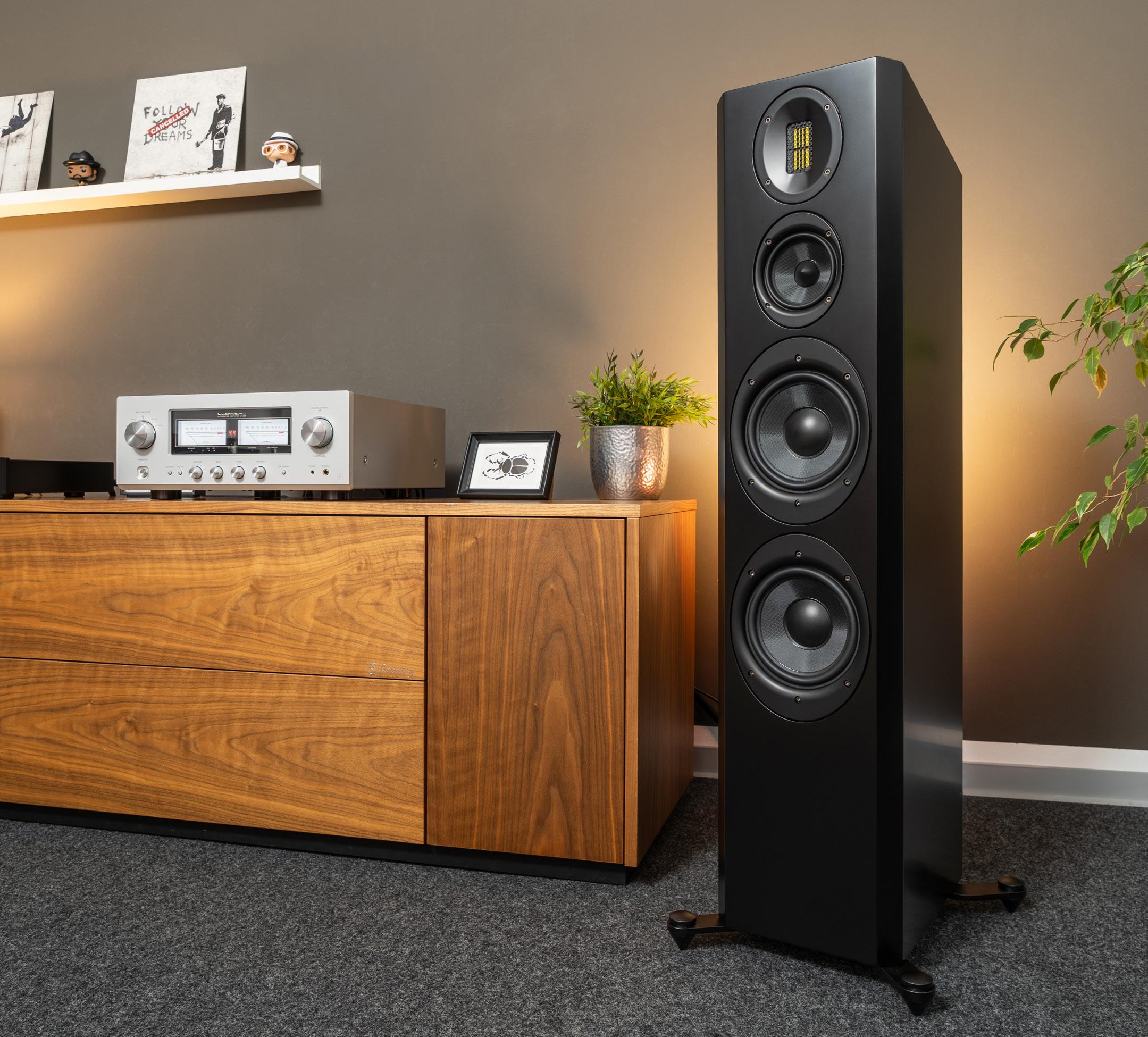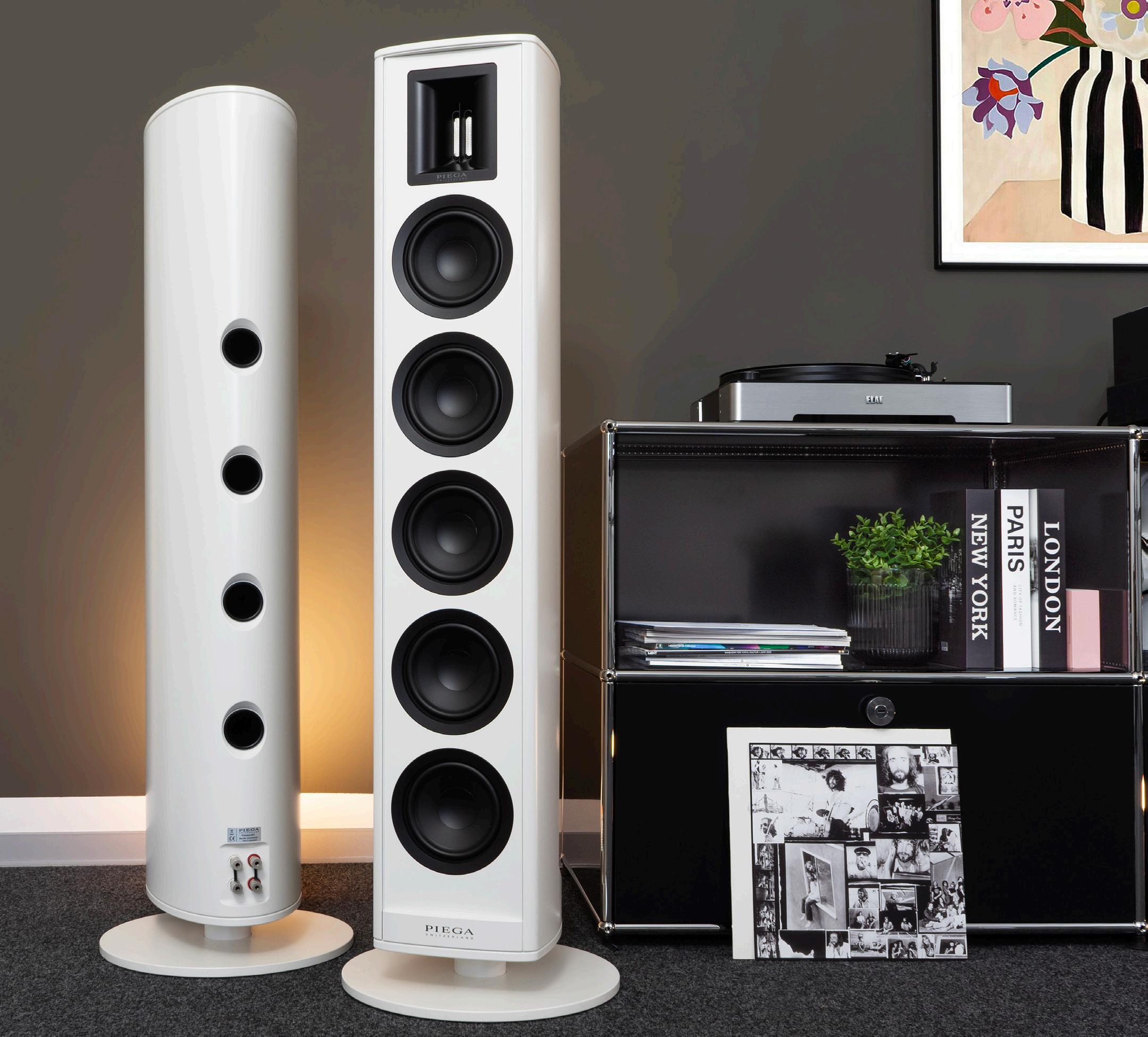 Mit leicht abgewandeltem Konzept geht es nochmal merklich nach vorne. Die Piega Premium 801 ist ein hervorragender Lautsprecher und zu Recht das Flaggschiff ihrer Serie. Die Kombination von Bändchenhochtöner und Hornvorsatz sorgt für noch mehr Natürlichkeit und verbesserte Ortung. Dazu greifen die neue Hochtonsektion und die vollsymmetrischen Treiber für Mittel- und Tiefton perfekt ineinander und schaffen einen enorm ausgeglichenen, musikalischen und gleichzeitig sehr präzise wirkenden Sound. Außerdem bieten die schlanken Standlautsprecher die gewohnt hochwertige Anmutung mit zurückhaltendem aber fraglos elegantem Design, dass sich in jeder Wohnumgebung gut macht. Eventuell muss man ein wenig mit der Aufstellung experimentieren, wobei einem die drei wählbaren Sockelkonstruktionen zusätzlich helfen können. Legt die Premium 801 dann einmal los, möchte man sie so schnell nicht mehr verstummen lassen.