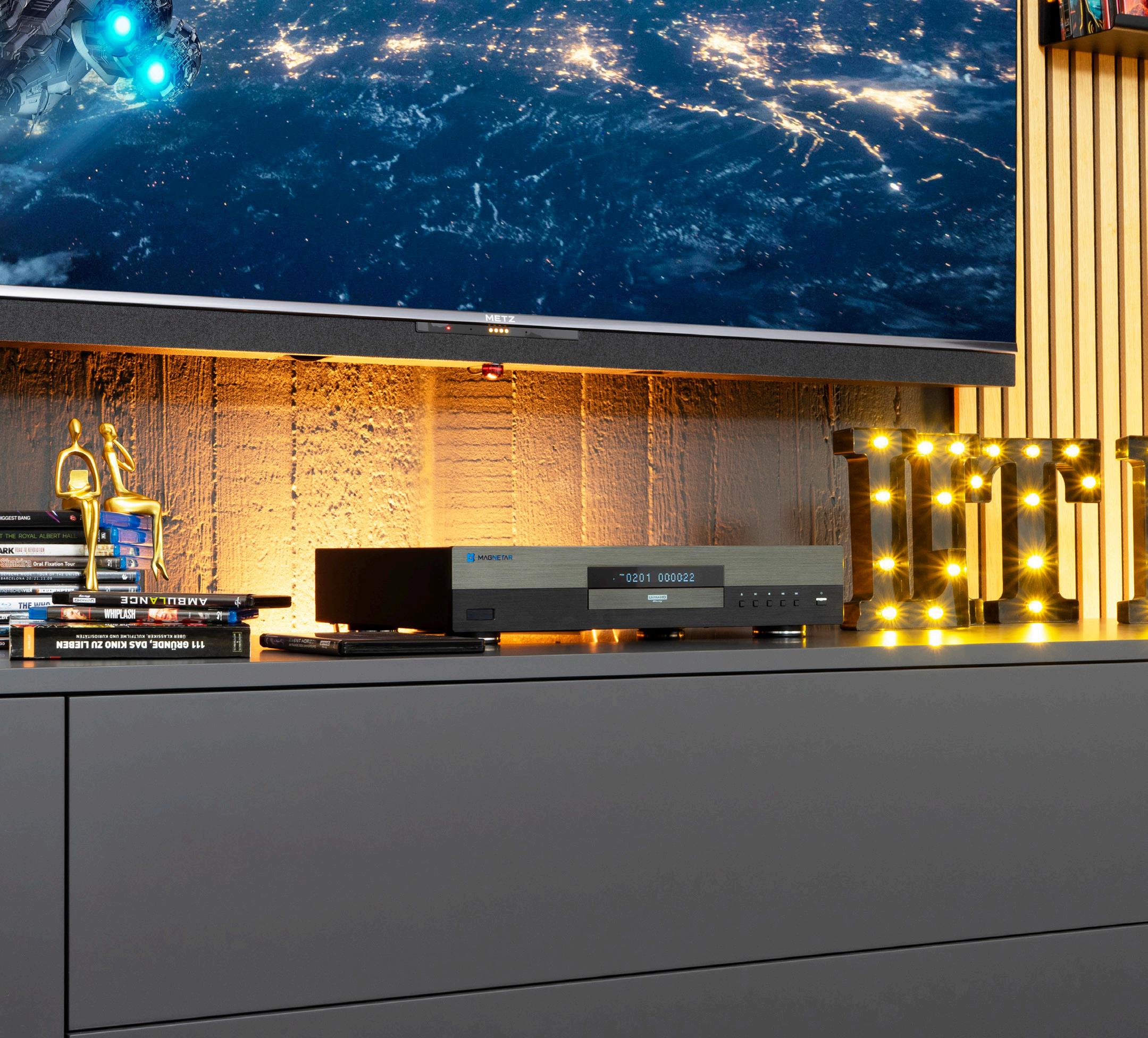 Mit seiner Fähigkeit praktisch alle gängigen Formate der Blu-ray, DVD, CD und SACD zu verarbeiten, ist der UDP800 bereits gut aufgestellt. Dabei sorgt seine Unterstützung für DolbyVision, HDR10+ und 4K-Auflösung für beeindruckende Bilder. Darüberhinaus überrascht Magnetars Disc-Player aber besonders mit seinem klanglichen Können. Dank HiRes-Streaming und Dual-Mono-DAC gelingt es ihm, sowohl immersiven Blockbustersound, wie auch audiophile HiFi-Klänge über ein Stereo-Setup wiederzugeben. Dabei lässt er sich dank übersichtlicher Menüs leicht bedienen und seine Verarbeitungsqualität steht seinen Qualitäten bei Bild und Ton in nichts nach. Wer aus seinen Discs das Optimum an Unterhaltung herausholen möchte, hat mit dem Magnetar UDP800 die Möglichkeit dazu.