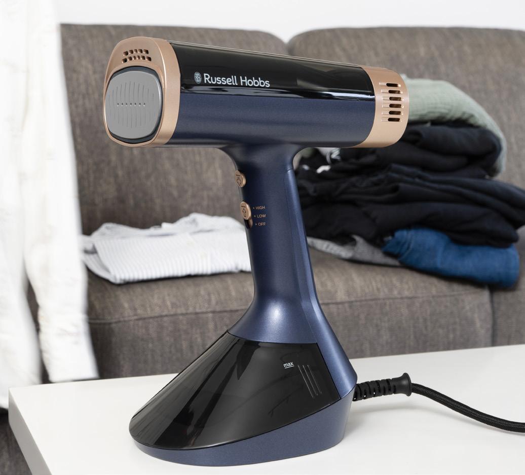 Der Russell Hobbs Steam Genie VacuSteam sorgt schnell und bequem für faltenfreie Kleidung. Durch die praktische Ansaugung macht der Dampfglätter praktisch die gesamte Arbeit selbst. So sind Hemden, Blusen, Hosen und mehr im Nu in Topform gebracht. Gleichzeitig lassen sich durch den Dampf auch Textilien auffrischen, da Bakterien und Gerüche damit entfernt werden. Die Nutzung ist dabei kinderleicht und da das Gerät selbst sich kaum erwärmt, ist auch die Sicherheit gewährleistet. Mit seiner Effektivität und seiner unkomplizierten Anwendung ist der Steam Genie VacuSteam die clevere Alternative zum Bügeleisen.