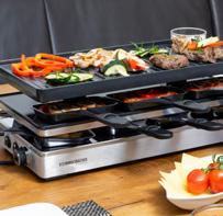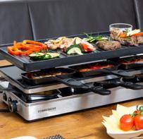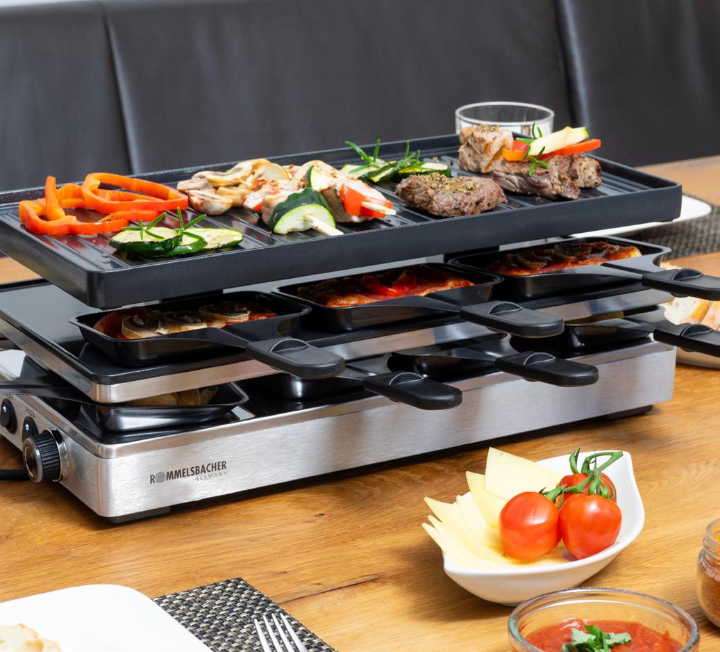 Rommelsbachers RCP 1800 ist ein cleverer Tischgrill, der mehr bietet, als nur das klassische Raclette. Dank der zuschaltbaren Unterhitze gelingen hier, neben leckeren Käse-Köstlichkeiten auch Pizzastücke wunderbar. Mit seiner Wendeplatte schafft der Grill dazu noch mehr Zubereitungsmöglichkeiten, während die praktische Parkebene stets für Ordnung auf dem Tisch sorgt. Seine solide Verarbeitung und die Umfangreiche Ausstattung überzeugen ebenfalls und gerade die große Anzahl an Pfännchen, sowie der praktische Teigausstecher, wissen zu gefallen. Und dank der exzellenten Antihaftbeschichtung ist selbst die Reinigung nach dem Festmahl in wenigen Minuten erledigt. Ob für die Feiertage am Jahresende, den Kindergeburtstag, die Hausparty, oder die gesellige Runde zwischendurch, der Rommelsbacher RCP 1800 sorgt für abwechslungsreiches, leckeres Essen.