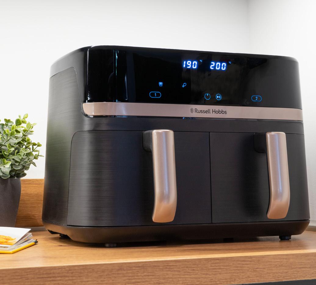 Bequemer kann man ein Abendessen nicht zubereiten. Die Russell Hobbs SatisFry Dual Basket überzeugt mit enormen Volumen, tollem Garergebnis und einfacher Handhabung. Dank ihrer großen Garkörbe und der praktischen Sync-Funktion, lässt sich schnell und mit wenig Aufwand eine Mahlzeit für die ganze Familie zubereiten. Dabei ist die Bedienung per Touchscreen einfach gehalten und auch die Reinigung des Airfryers geht flott von der Hand. Dazu ist der praktische Küchenhelfer außerdem hochwertig verarbeitet und elegant designt. Die Russell Hobbs SatisFry Dual Basket ist eine der vielseitigsten Heißluftfritteusen auf dem Markt, die man schon nach kurzer Zeit nicht mehr missen möchte.