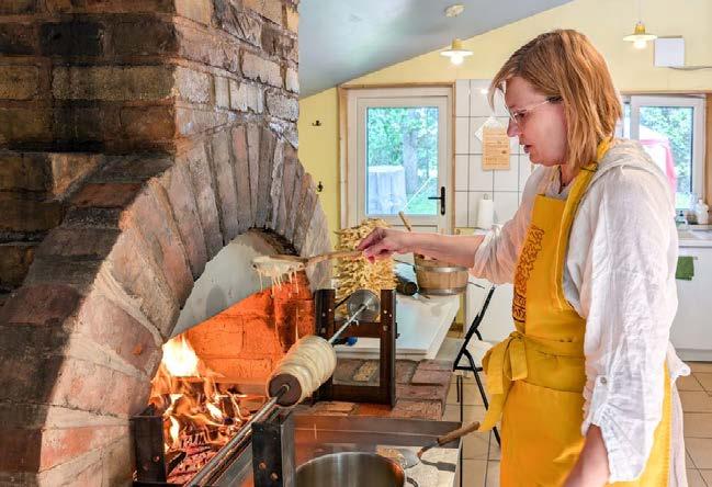 Experience the continuous celebration of tree cake making at Gamtos Girnos, from the initial egg cracking to breaking off the first piece of the tree cake. May the fire in the furnace bring you joy as a homemade pastry melts delightfully in your mouth.