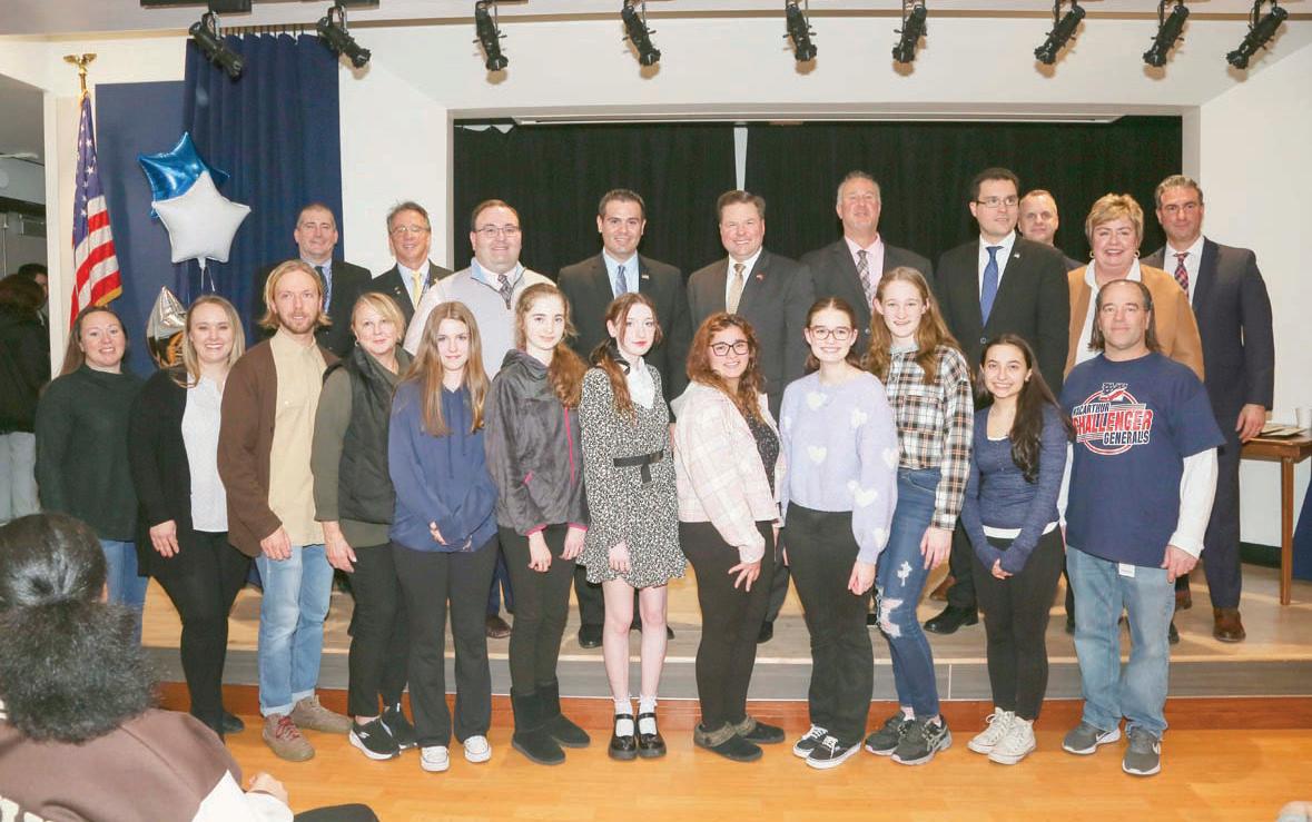 Hempstead Town Clerk Kate Murray congratulated Adam Zuffrante, Jennifer Barba, William Salvage, Gabriella Krasko, Zeemal Jaffery, Haddie Kelly, Kevin Doherty, Sobaan Mian, Annabella Camisa, Anthony Marroquin, Yuremi Ronquilio Leiva, Mykaela Padilla, Amelia Verbeeck, Ethan Duque, Jefferson Gonzalez Ochoa and Jonathan Zavala Romero of Stokes Elementary School in Levittown as they were named “Terrific Kids” by the Levittown Kiwanis. Also attending were Michael Pappas and Pat Carney of the Levittown Kiwanis, Principal Allison Ackerman and Nassau County Legislator John Ferretti.