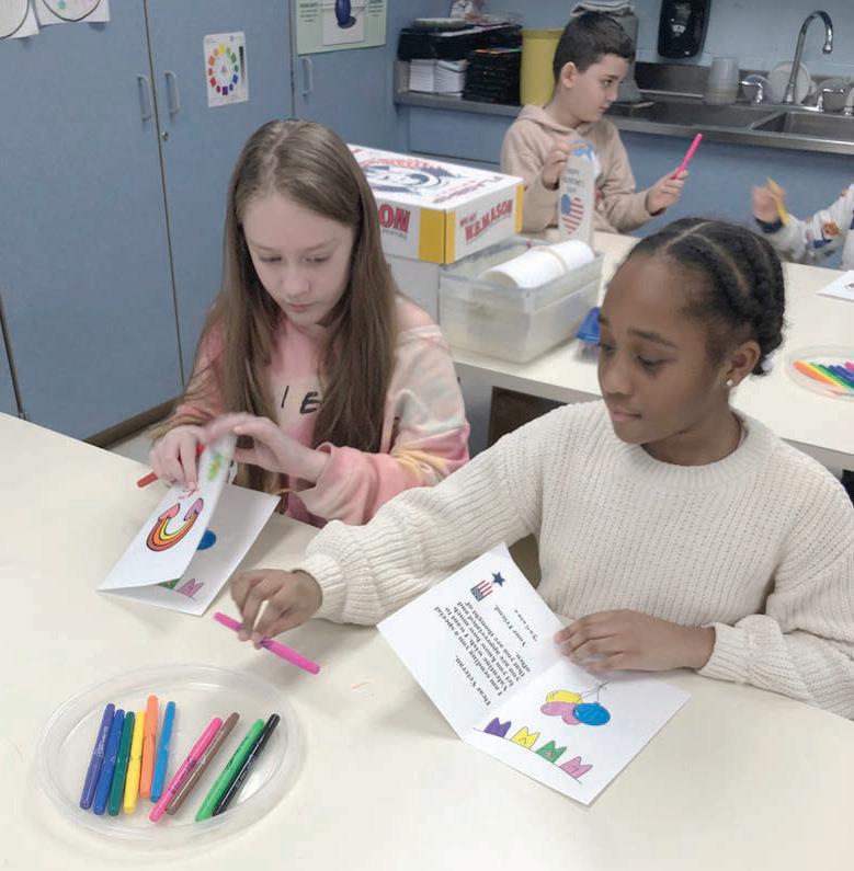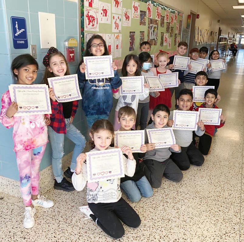 The elementary students created 585 Valentine’s Day cards to be distributed to veterans in hospitals and nursing homes. Each student received a certificate from Nassau County for taking part in the program.
