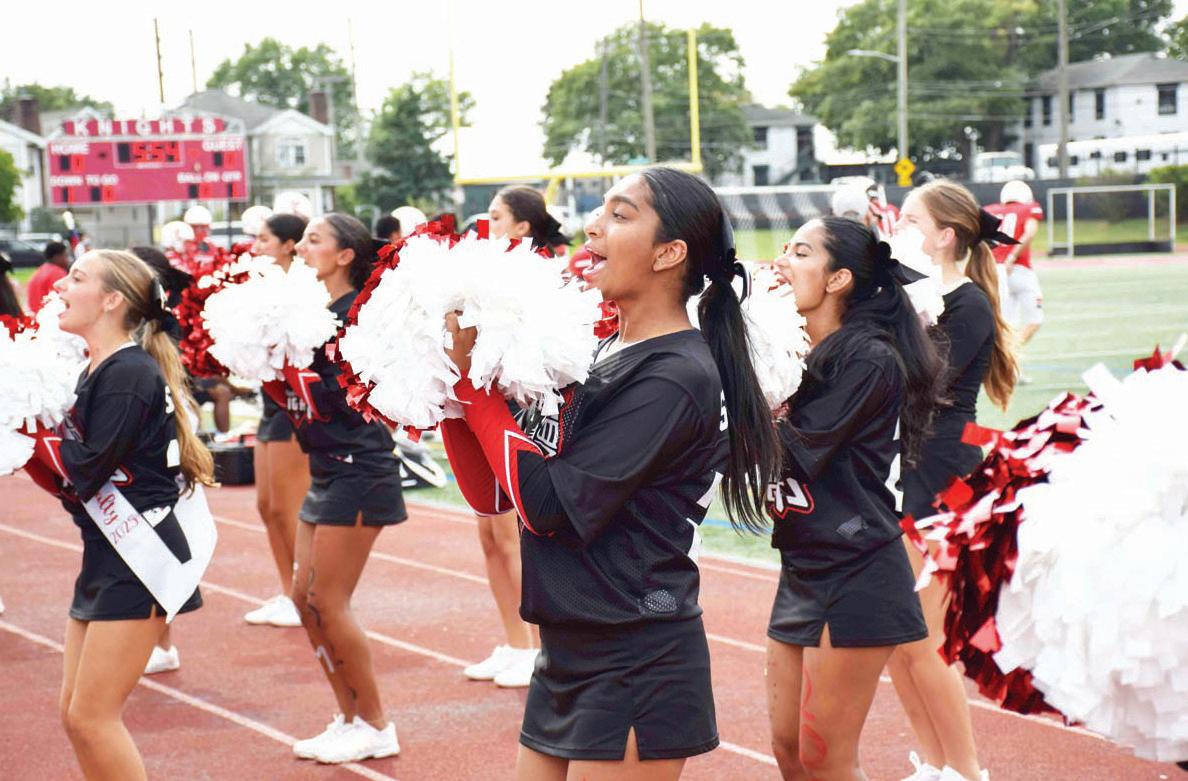 with excited fans cheering loudly and proudly for the Knights. The varsity team faced off against Valley Stream South High School and secured a 21-9 victory. Halftime entertainment featured energetic performances by the Florettes and the varsity cheerleaders.