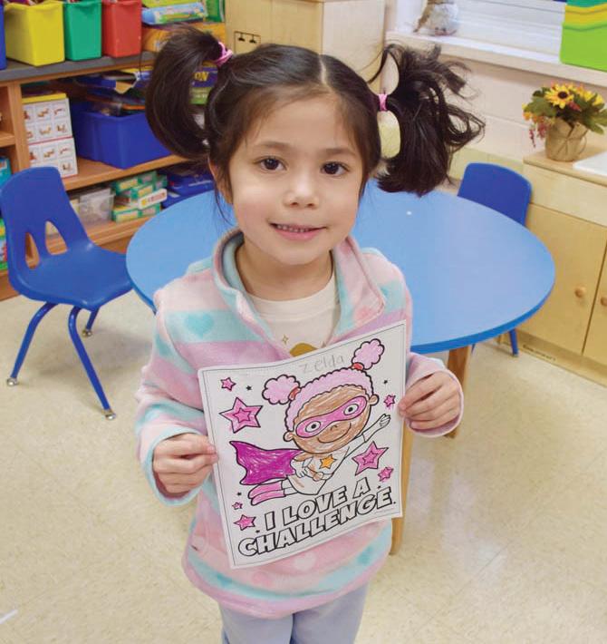 The lesson wrapped up with a creative activity, as pre-K and kindergarten students colored artwork featuring positive growth mindset messages such as “I believe in me!” “I am a problem