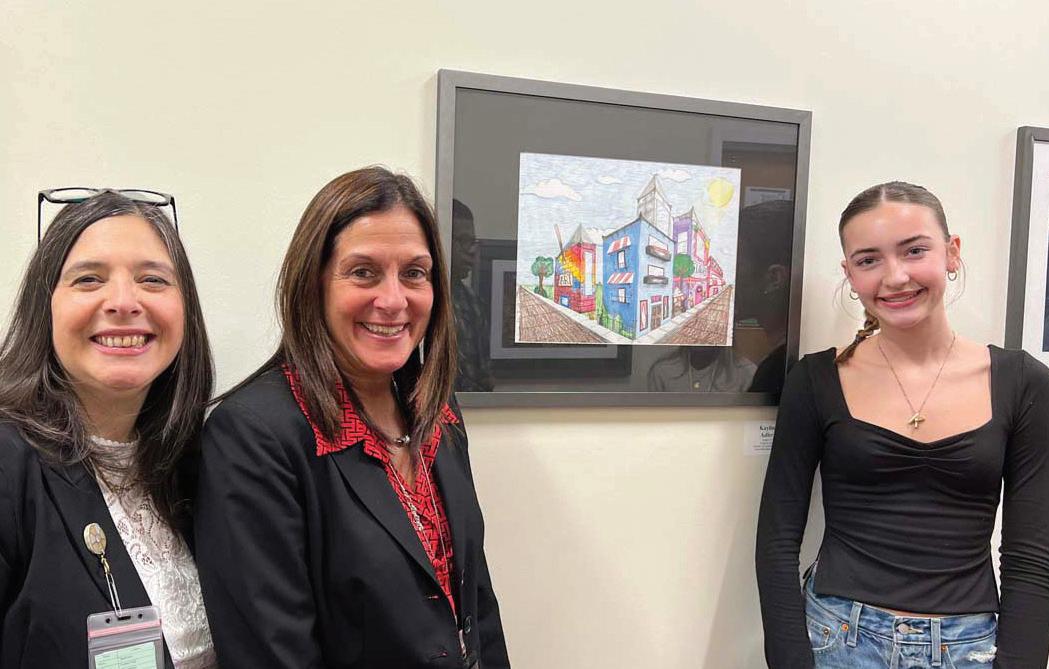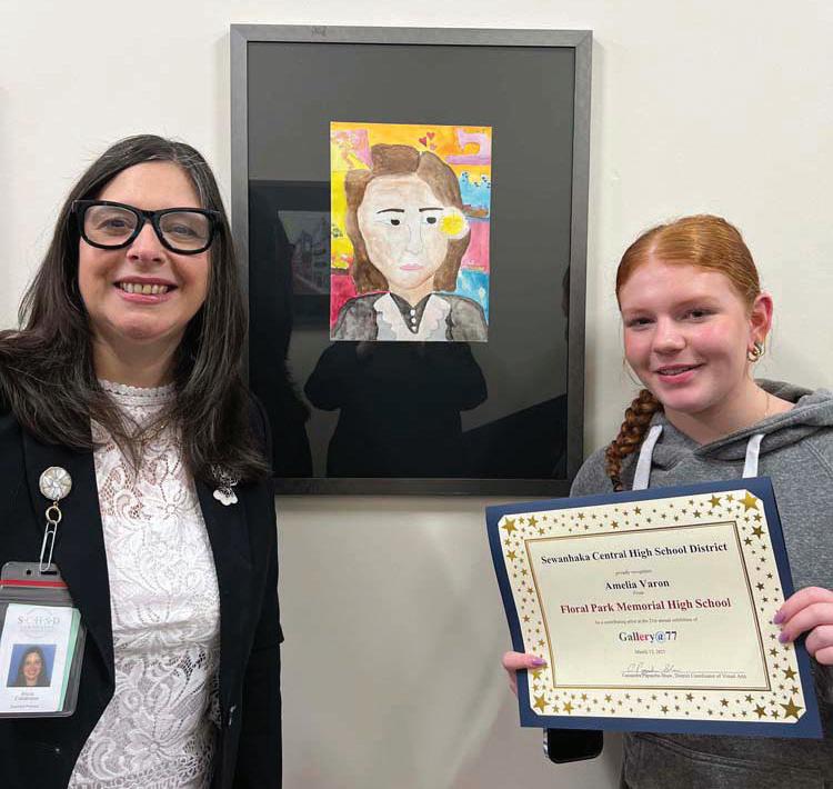 On March 13, the Sewanhaka Central High School District Art Department hosted a special reception at the Central Administration Building to recognize the talents of 25 outstanding student artists from across the district. Each district art teacher selected a standout masterpiece from their top-performing student to be showcased. The event brought together student artists, district supervisors, teachers, and proud family members, all gathering to celebrate the creativity and artistic achieve-