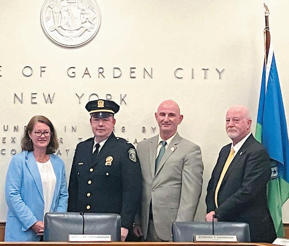 I administered the oath of office to newly promoted Detective Lieutenant William Grimes during a brief ceremony at Village Hall Thursday, June 7, 2024. Det. Lt. Grimes began his career with the Garden City Police Department in 1989. He was promoted to Patrol Sergeant in 2005 and Detective Sergeant in 2017. In addition to his normal supervisory functions overseeing the Department’s Detective Unit, Det. Lt. Grimes now oversees the Department and the Village’s Security Infrastructure Programs and manages the new License Plate Reader Project. He serves as the liaison to the School District and assisted them in developing their Security Operational Plans, which included gaining access to their camera and keyless entry systems. Further, he serves as the Department’s intelligence officer and attends weekly countywide intel, counter-terrorism, and school threat analysis meetings.