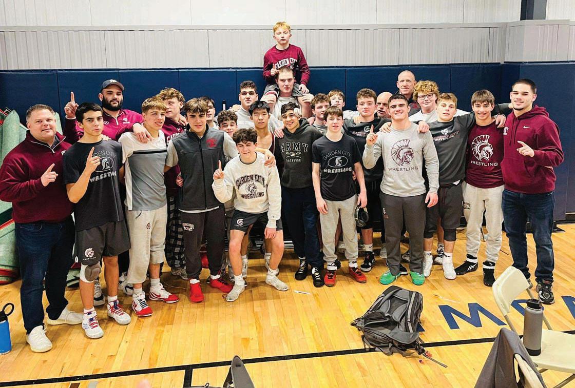The Garden City Varsity Boys Swimming & Diving team secured another victory in the 2024/2025 season by outperforming North Shore High School at Hofstra University. See page 44