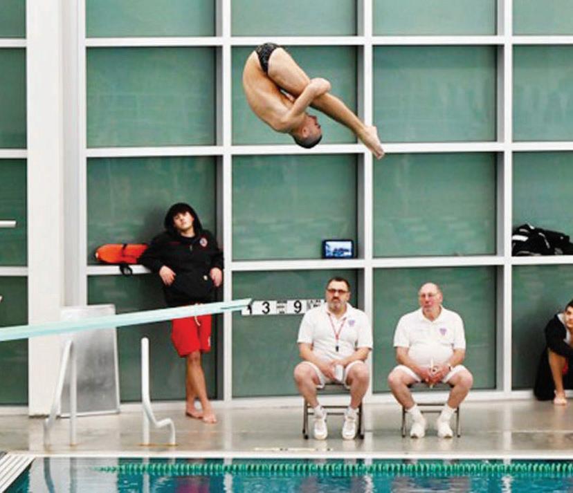 Julien Crampe, a current junior, has achieved remarkable feats, including setting a new diving record at Garden City High School on December 2 during the competition at Farmingdale, where he not only won his event but also established an unprecedented record for that meet with a score of 546.75 points. After transferring to Garden City High School in September from the Collegiate School in Manhattan, where he spent eleven years, Julien has made a significant impact in just two years of diving. Leveraging his extensive gymnastics experience, he has found considerable success as part of the Long Island Divers at Eisenhower Park. Julien ranked in the top 20 nationally in both the 3 meter and 1 meter springboard events for his age group at the 2024 AAU National