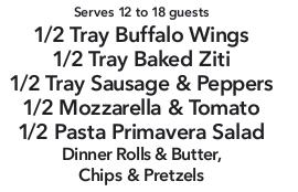 1/2 Tray of Assorted Pinwheels w/ a Side of Sauce - $35 +tax 1/2 Tray of Buffalo Wings - $35 +tax