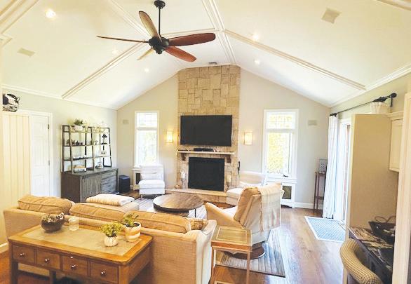 • Cozy family room adjacent to kitchen with gas fireplace.