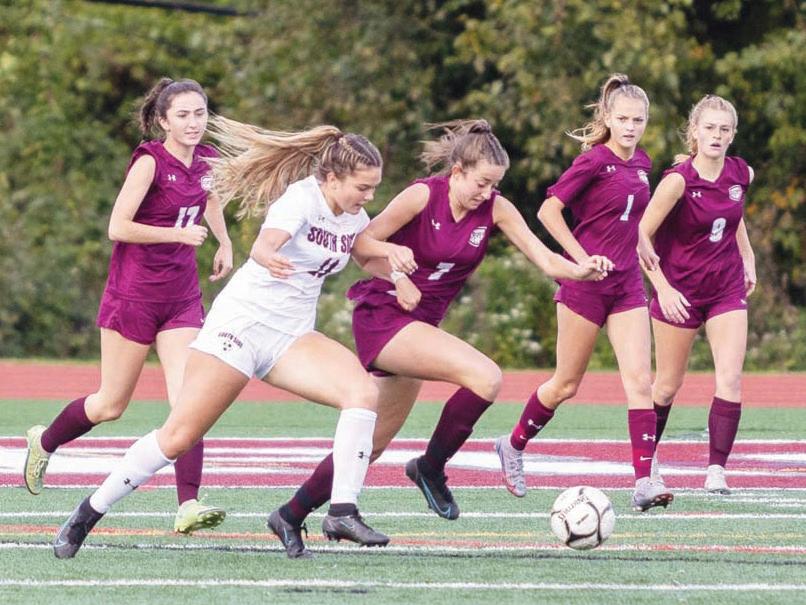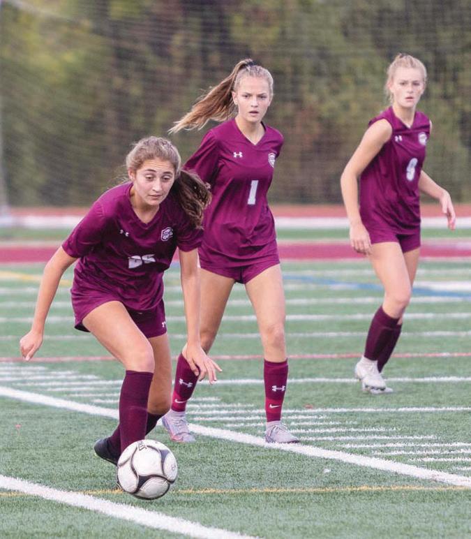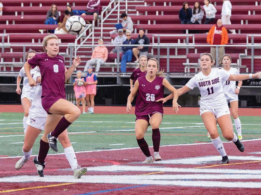 The Trojans last league game of the season ended in another 1-1 tie and helped the GC girls to clinch the number two seed in the play offs. On October 12, the Trojans faced up against Southside HS. This game was another battle from start to finish. Once again, midfielders Maya Costa, Catherine Hayes and Chloe Benik controlled the middle of the field for the majority of the game. Although the Trojans had several chances and a total of 15 shots on goal, Southside was the first to get on the board off of a corner kick at the start of the sec ond half. This fired up the Tojans, and they quickly answered back. Approximately a minute later, the GC girls earned a corner of their own and Bella Vona was able to find the back of the net off a ball from Maya Costa. The rest of the game was a back and forth battle. Kathryn Monaco, Riley Donohue, Bella Vona, Emily Romeo, and freshmen Brianna Ciccone, Leelee Gaffney and Deanna Prisco put