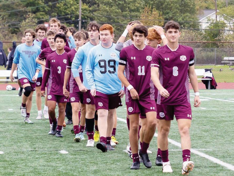 The Garden City boys’ varsity soc cer team completed an undefeated regular season with a 2-0 victory over Great Neck North on Senior Day. The Trojans won their Conference with a perfect 12-0 record and are headed into the playoffs as the number one seed in Nassau A. The boys have had a sensational season, getting better with each game as they continue to get timely scoring from their strikers and play shutdown defense in front of keeper James Castoro.