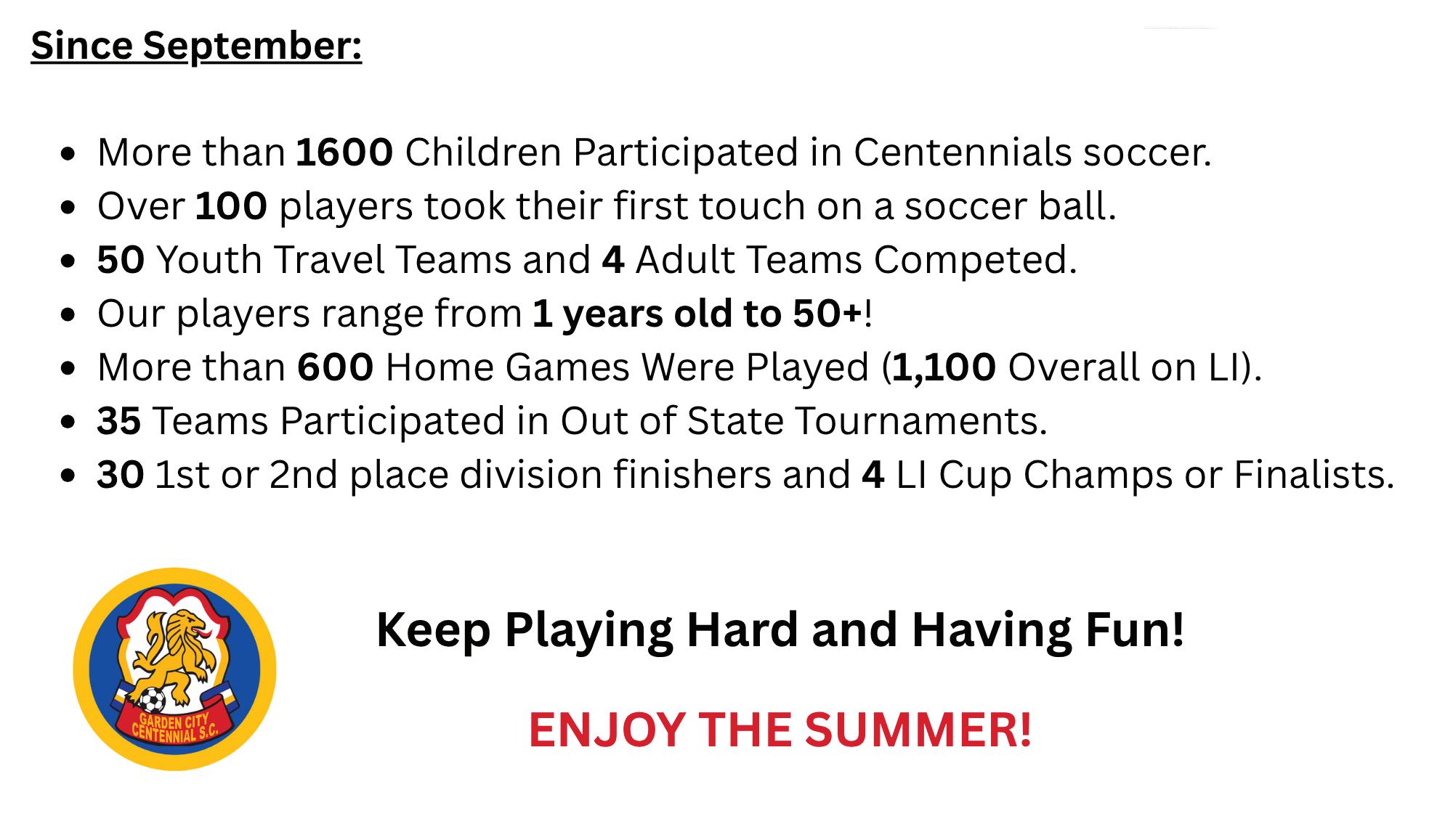 The Garden City Centennial Soccer Club Thanks All Coaches, Parents, and Players for Another Spectacular Year!