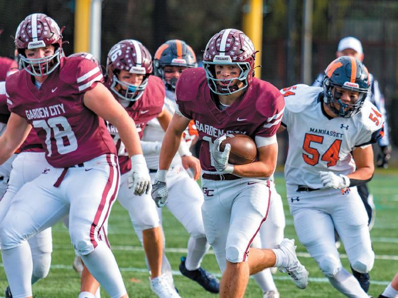 The Garden City Girls Cross Country team had a great season with a mix of returning athletes and new talent. Led by senior captains Eva Vitale, Saige Scala, and LuLu Caldera, and under the guidance of Coach Seth Messier in his 10th year of coaching the team. Sophomore Taylor Maguire led the team while teammates Abby Tedesco (junior) and Eva Vitale (senior) also had strong performances throughout the season.