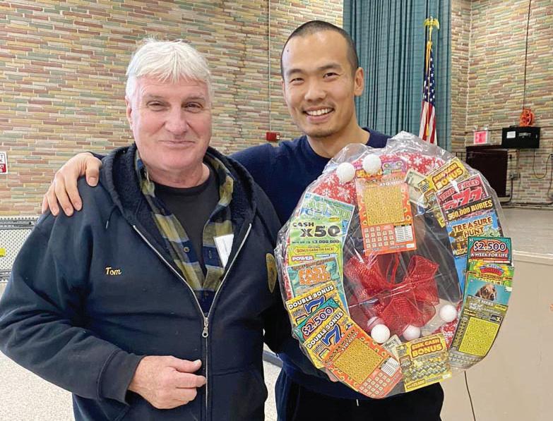 Lisa Vanderburg is the winner of the Levittown Community Council’s WinterFest raffle. The 50” digital TV was donated by P. C. Richards and Sons. David Zhang showcases the wreath filled with $100 worth of lottery tickets on behalf of his daughter Quoia, the winner of the WinterFest raffle prize. Levittown Community Council board member Tom Kohlman offers congratulations. The Jonas E. Salk Middle School bowling team enjoyed an undefeated season. Photo courtesy of Levittown Public Schools