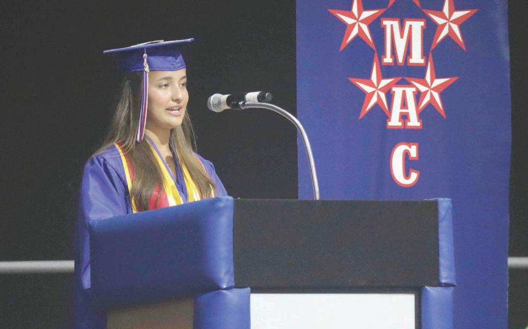MacArthur Principal Joseph Sheehan welcomed guests and urged graduates to keep moving forward into the future. “Be ready to embrace the new experiences that lie ahead and step on to that road to the future with steadfast confidence,” he said. “Have faith in your own abilities, work hard,