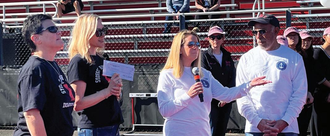 John and Mara Navaretta of Woodbury, parents of Sabrina Navaretta, whose life was tragically taken in a car accident present their second annual check donation to Syosset Dog Rescue Co-Advisors Jodie Cohen and Dana Kaplan at the “Sabrina Navaretta Syosset H.S. Dog Rescue Walkathon.”