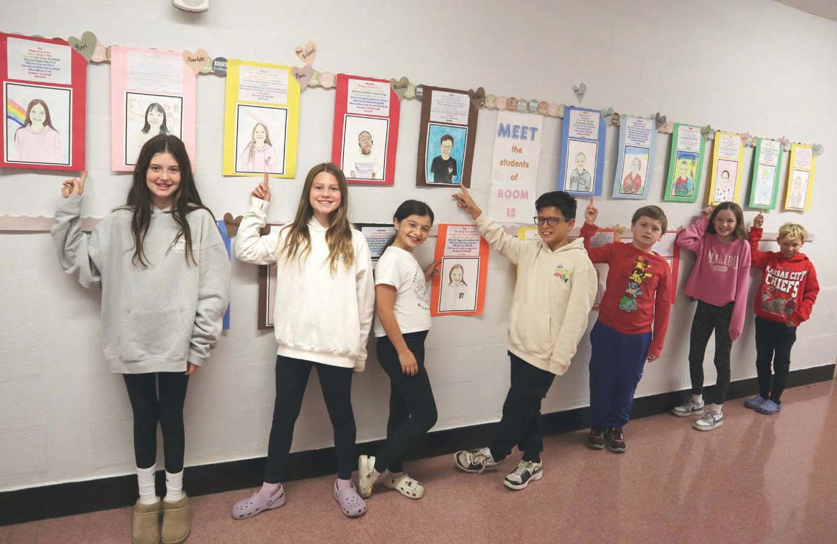 Fifth graders in Mrs. Vogel and Mrs. Roland’s class learned about bio poems, in which writers express the traits that define them as a person. Students filled black-and-white selfies with color before starting with the first line of their poem – their