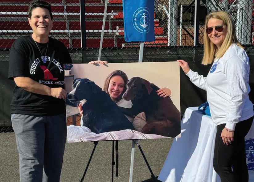 adorning Syosset Dog Rescue Club’s Walkathon’s new name, the “Sabrina Navaretta Syosset H.S. Dog Rescue Walkathon,” which features large pictures of Sabrina. Syosset Dog Rescue’s Co-Advisors Jodie Cohen and Dana Kaplan renamed the Walkathon last year in Sabrina’s honor after her life was tragically taken in a car accident while returning from a college function as a freshman at the University of Delaware.