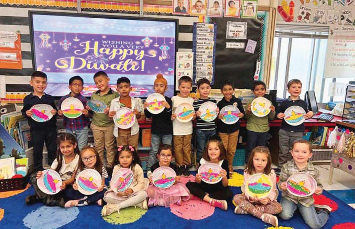 Kindergarten students at Woodland Elementary School in Hicksville celebrated Diwali by learning about the holiday and making Diyas to join in the celebration of lights.