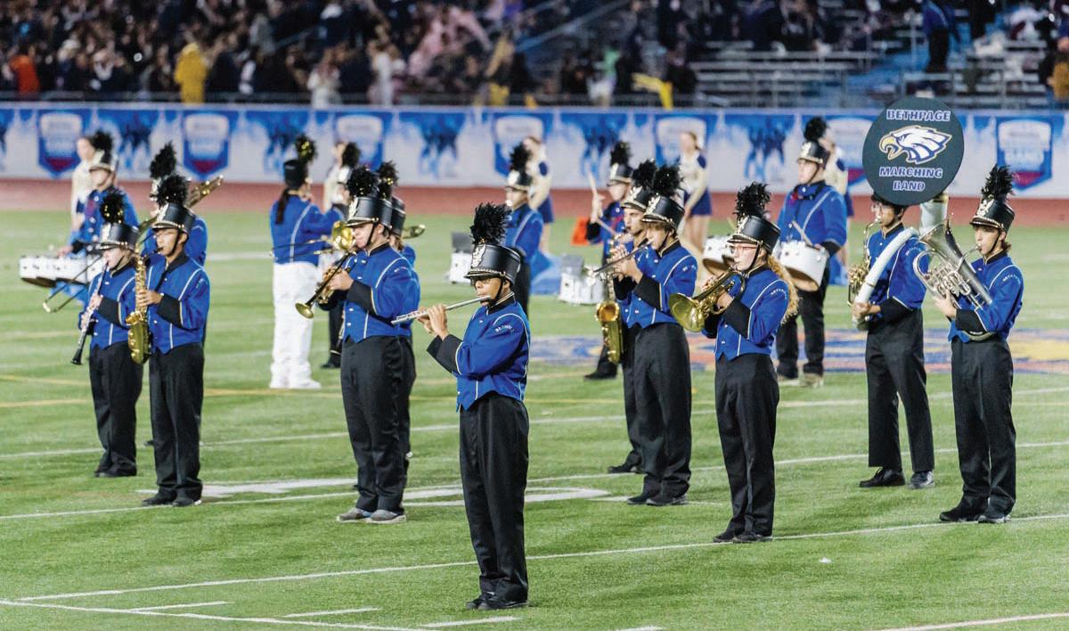 The Bethpage High School marching band, color guard, and kickline team made a vibrant appearance at the 2024 Newsday Marching Band Festival, performing a lively medley titled “Shut up and March.” The show featured the upbeat songs “Let’s Dance,” “Dance the Night” and “Shut up and Dance.” Their impressive performance took place on Oct. 24 at the Mitchel Field Athletic Complex, drawing cheers from the crowd.