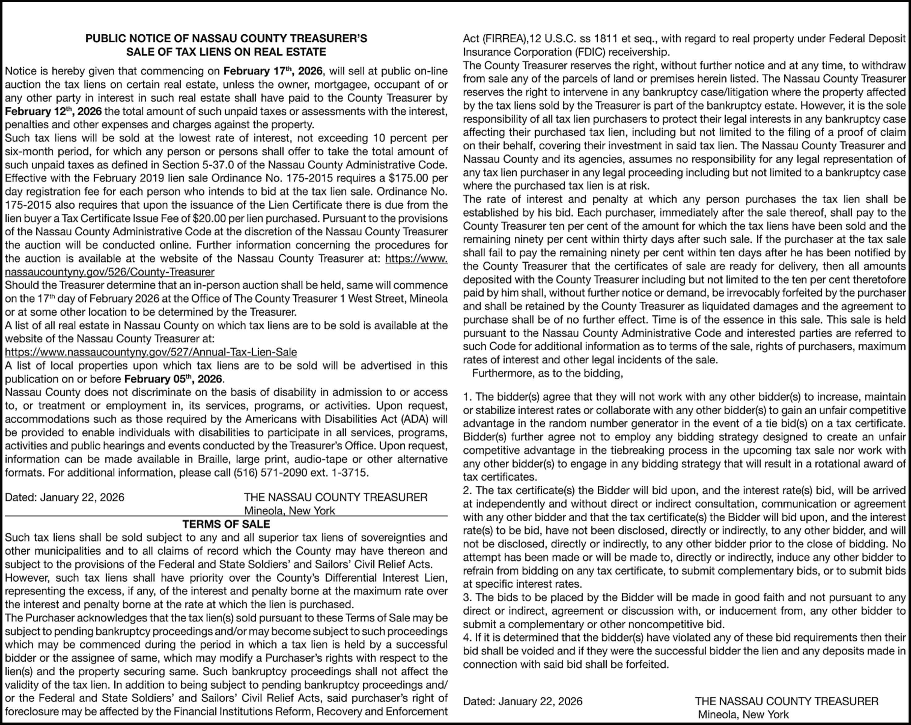 For additional information, please contact Deputy Minority Leader Drucker’s office at 516-571-6216 or adrucker@nassaucountyny.gov.