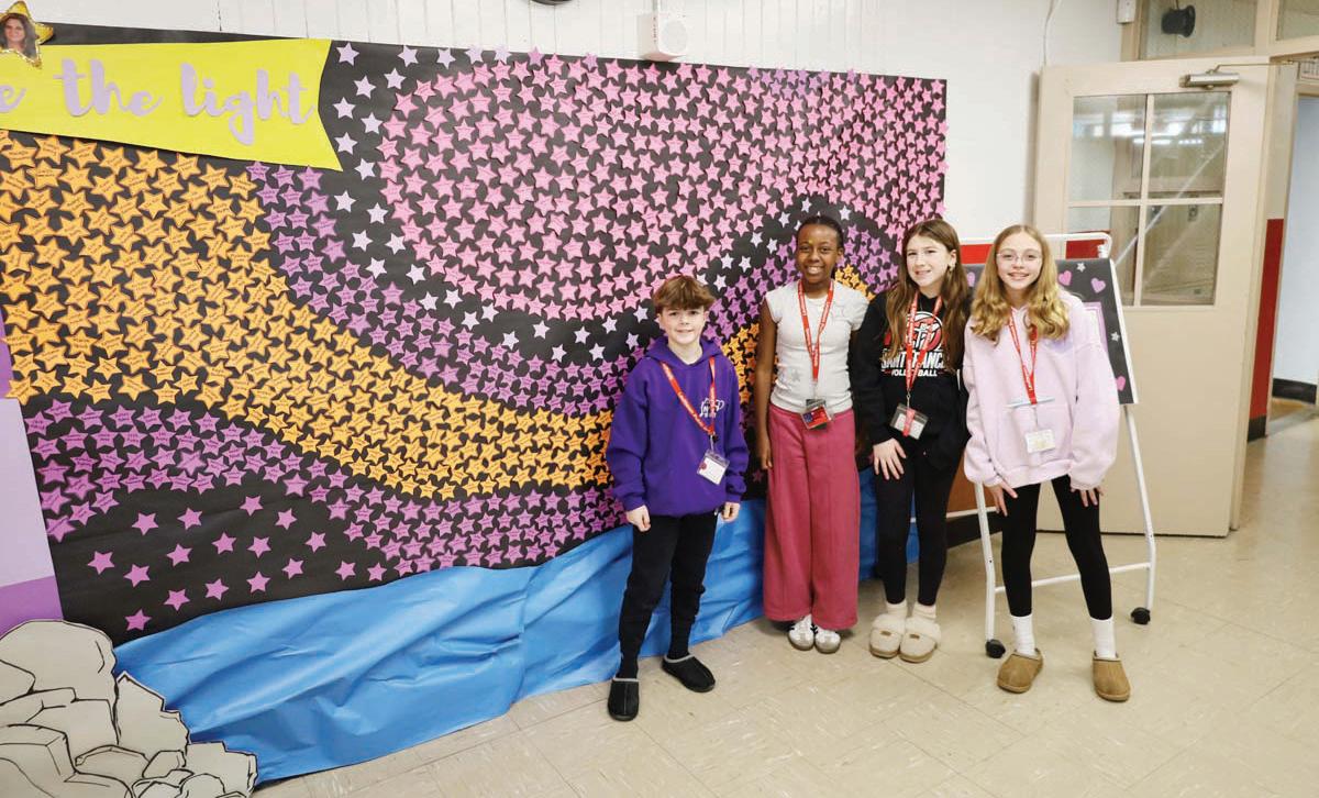 resented in a mural displayed by the front lobby reflecting the theme, “Be The Light.” Outside the cafeteria, students sold purple bracelets, stress-relief toys and sunglasses, as well as raffle tickets for the chance to win one of several prize baskets. At Division Avenue High School, hearts were decorated with messages dedicated to peers who received an uplifting message. Every student’s name was represented in paper chains hung throughout the building, mirroring their unity.