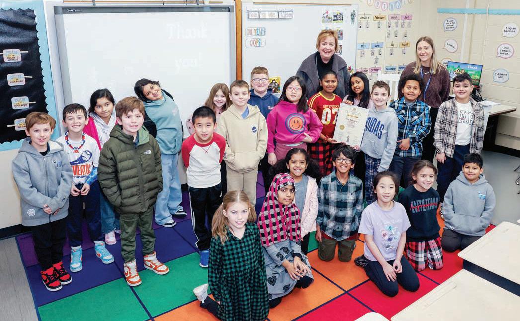 Hempstead Town Clerk Kate Murray (rear, second right) visited Abbey Lane Elementary School in Levittown to participate in Community Reader Day. The heartfelt artwork will be delivered to local veterans’ organizations.