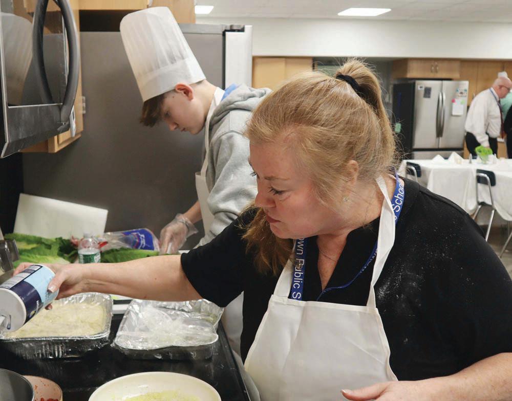 cooking and baking. Students joined with teachers to put their skills to the test and create pizzas from scratch, including a burrata pizza, a Margherita pizza and a dessert pizza. The kitchen was abuzz with energy as teams prepared each ingredient with the hope of obtaining a firstplace win. Students presented their dishes to judges, who chose the burrata pizza as the winner.