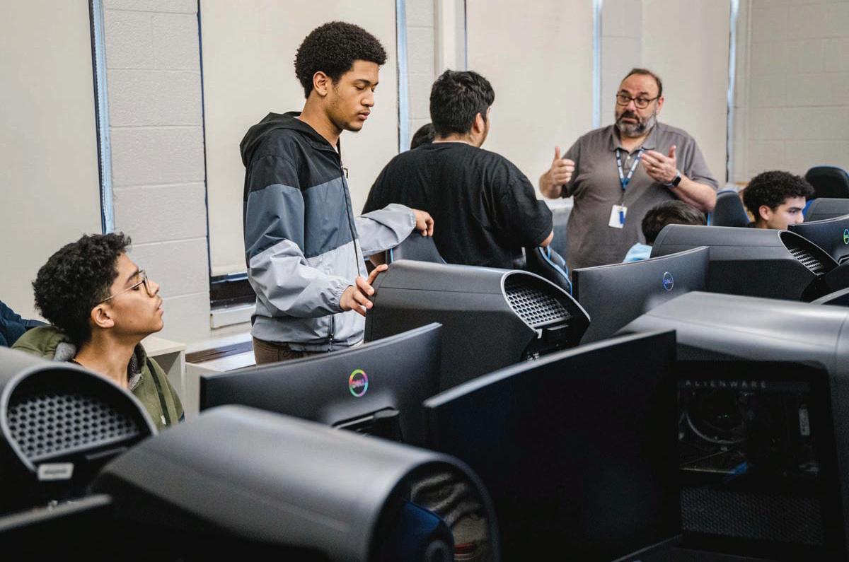 Bethpage High School students readied for an esports practice session, which the NASTECH attendees were invited to watch.