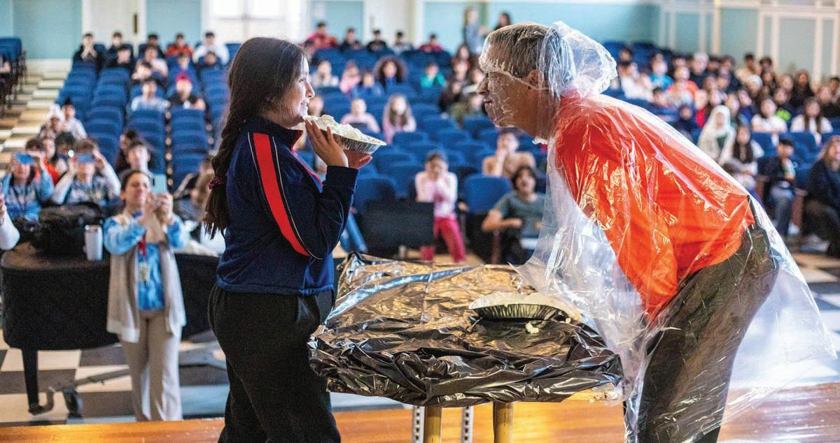 Hicksville Middle School Assistant Principal Jonathan Silkowitz took a pie in the face for a good cause.