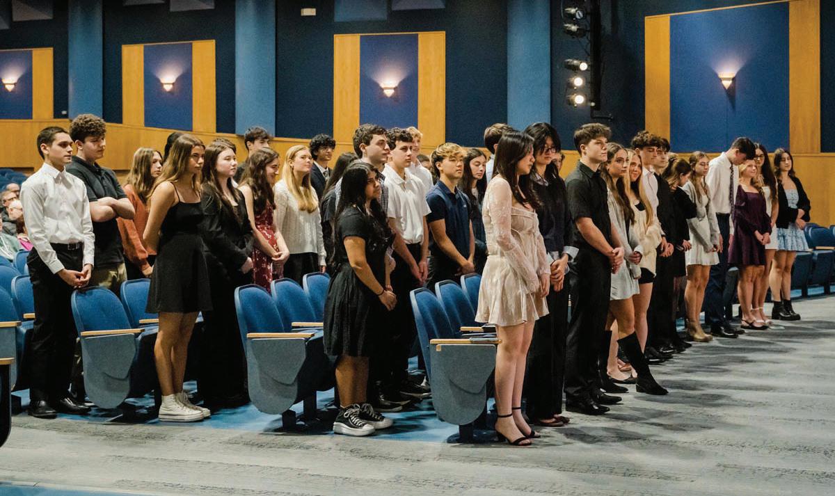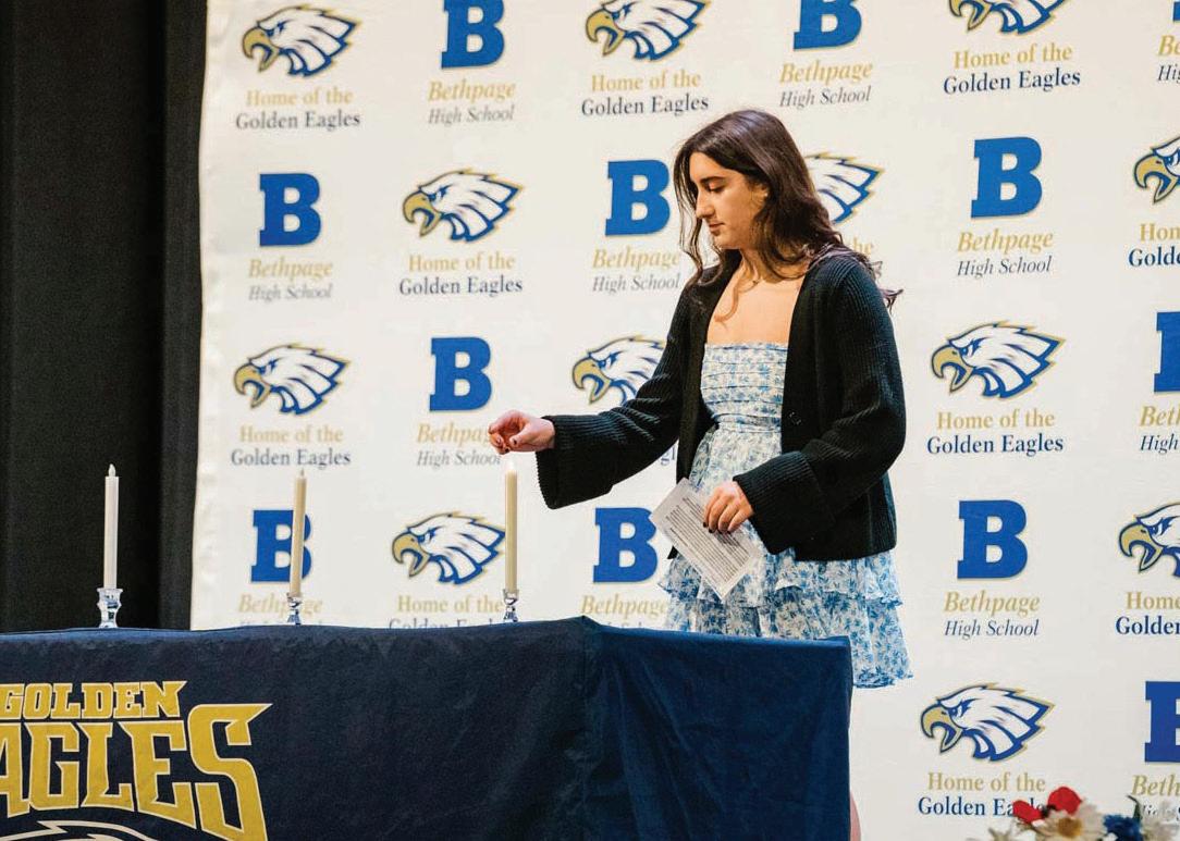 The ceremony was led by Ms. Charly Hirch-Beckman, Assistant Principal of Bethpage High School in the Bethpage High School auditorium. Erica Indenbaum, chair of the social studies department, welcomed the inductees and acknowledged the Rho Kappa officers before introducing the keynote speaker, Mr. Rob Verdi. A dedicated social studies teacher at Bethpage High School and a U.S. Army veteran, Mr. Verdi delivered an inspiring address centered on the theme of service.