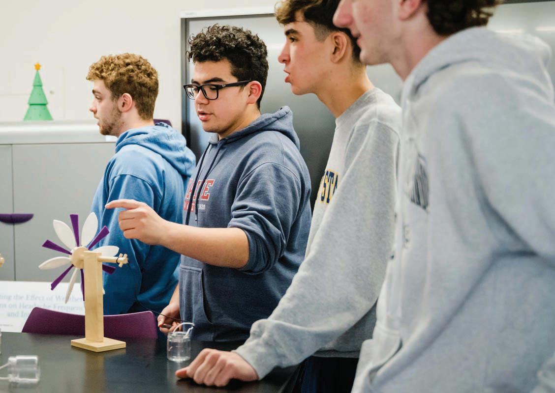 Engineering students talk to NASTECH members about some of their recent projects, which they produced using AutoCAD and a 3D printer in the STEM lab.