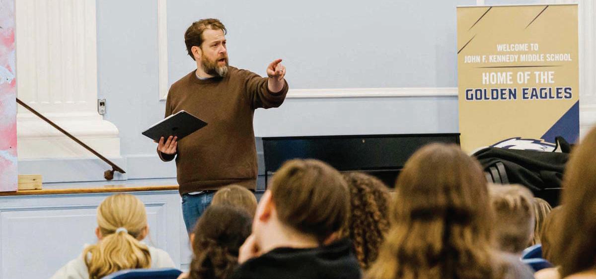 Members of John F. Kennedy Middle School's Masquers Guild received an extraordinary learning opportunity on Jan. 14 when Broadway actor Andrew Kober led a three-hour masterclass in the school auditorium.