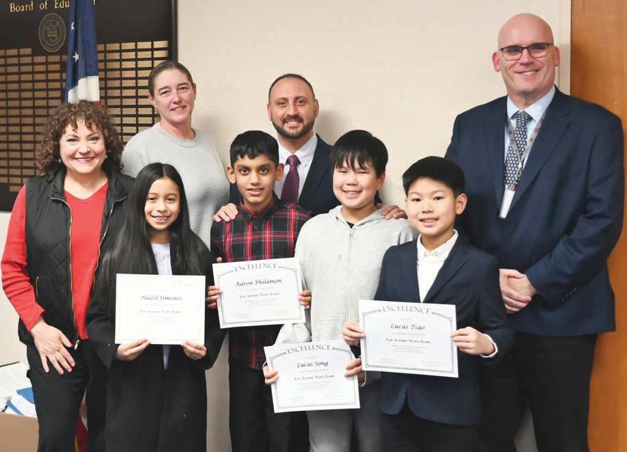Starting his recognitions, Dr. Fulton shared the launch of the Lee Avenue Elementary School news team, an initiative introduced this school year and made up of dedicated students Hazel Jimenes, Aaron Philamon, Lucas Song and Lucas Tsao. The members have stepped into professional-style roles such as coanchor, meteorologist, sports broadcaster and cameraman.