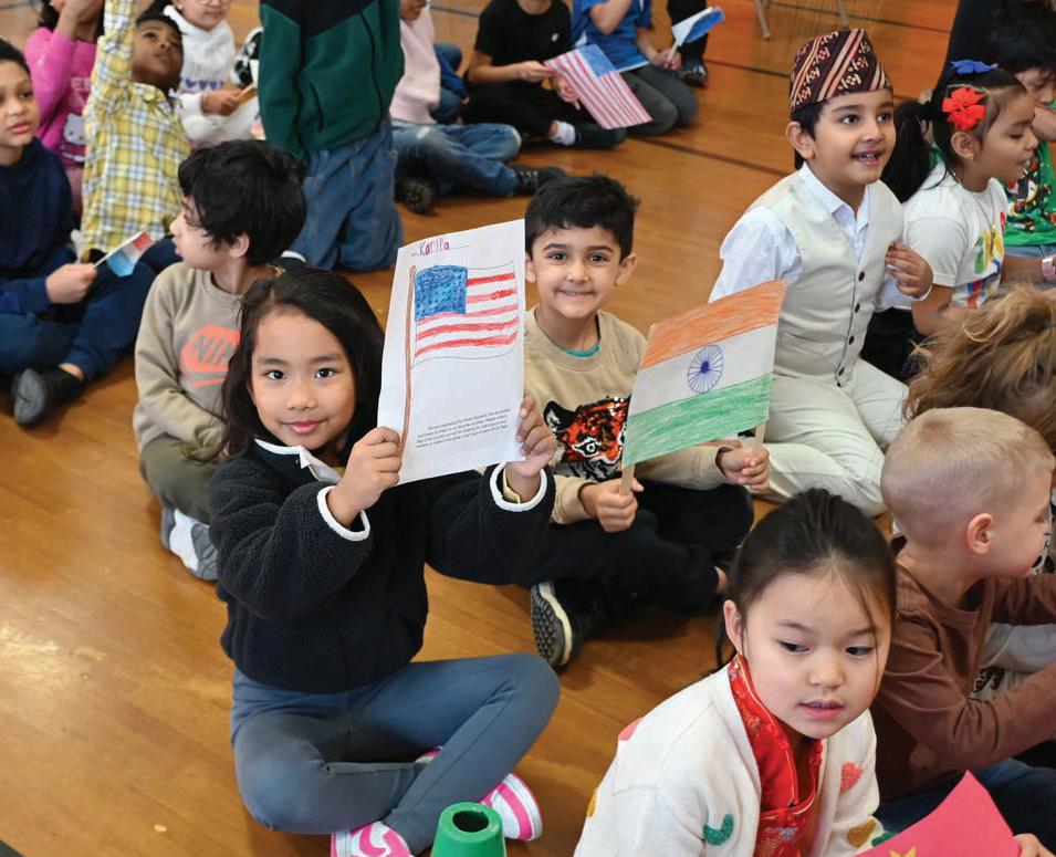 In celebration of the 2026 Winter Olympics, students at Burns Avenue Elementary School in Hicksville held a schoolwide Olympic opening ceremony on Feb. 5 in the school’s gymnasium. Students proudly raised flags that they created in class which represented countries from around the globe. The room was abuzz with excitement as members of the student council kicked off the fun, parading in with